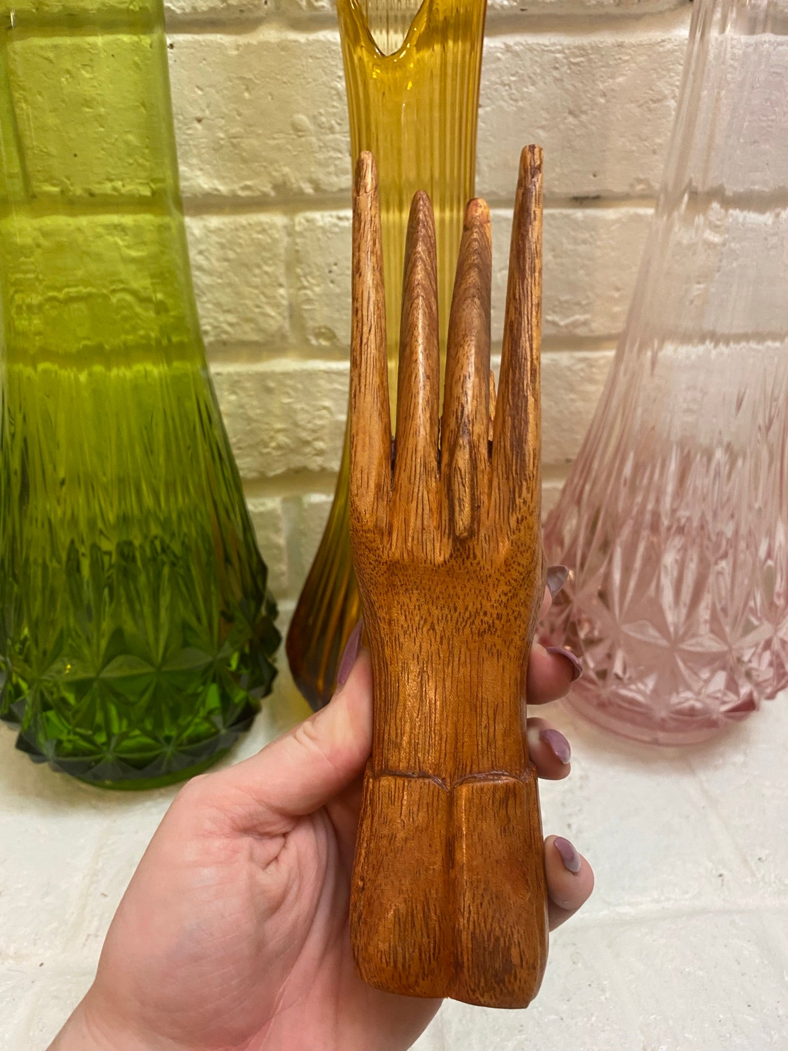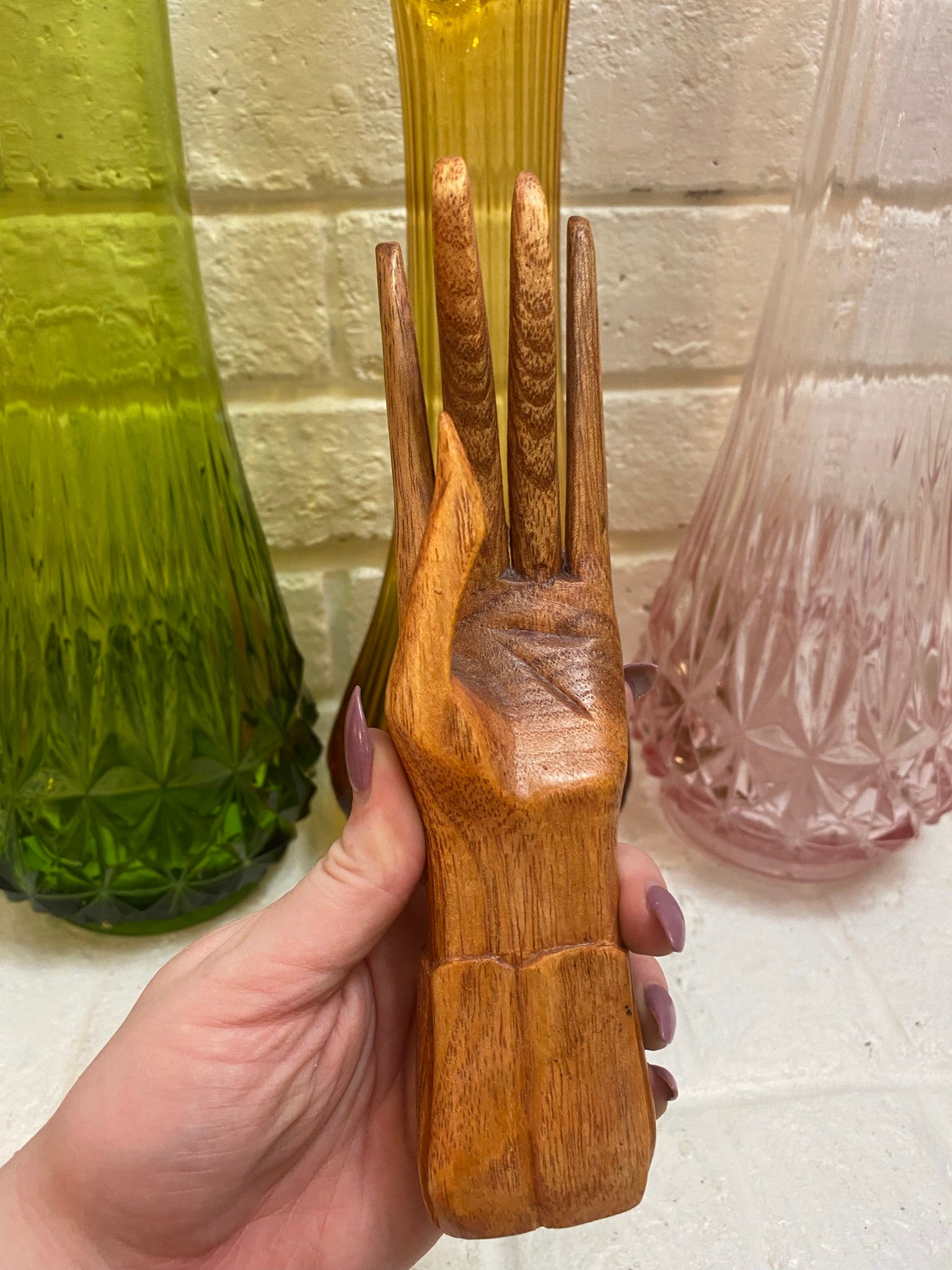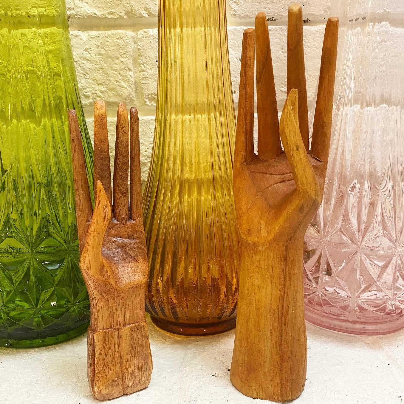 Vintage Balinese hand carved hands in the Akash Mudra position. Each is in good condition.