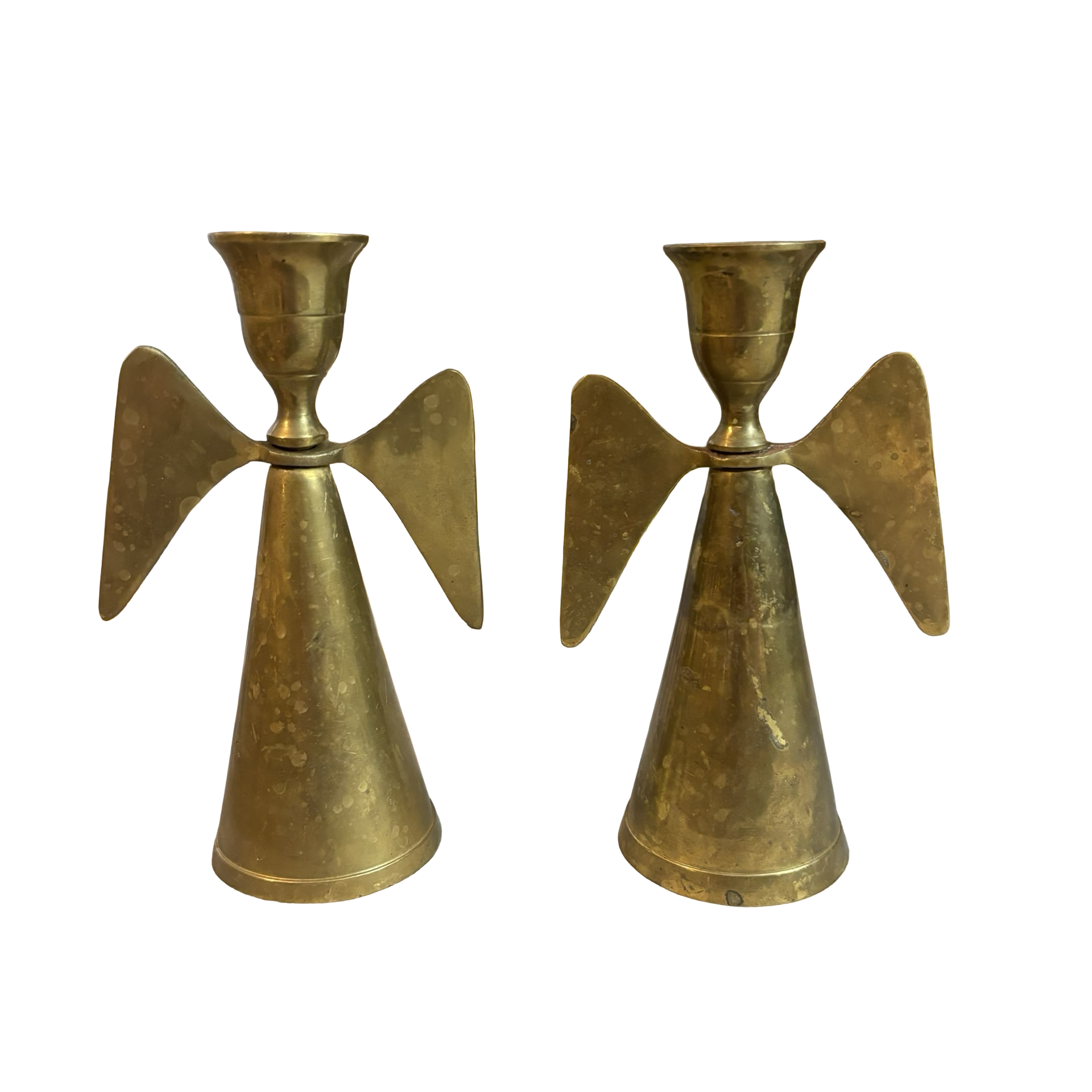 A beautiful and festive pair of vintage brass angel candlesticks.