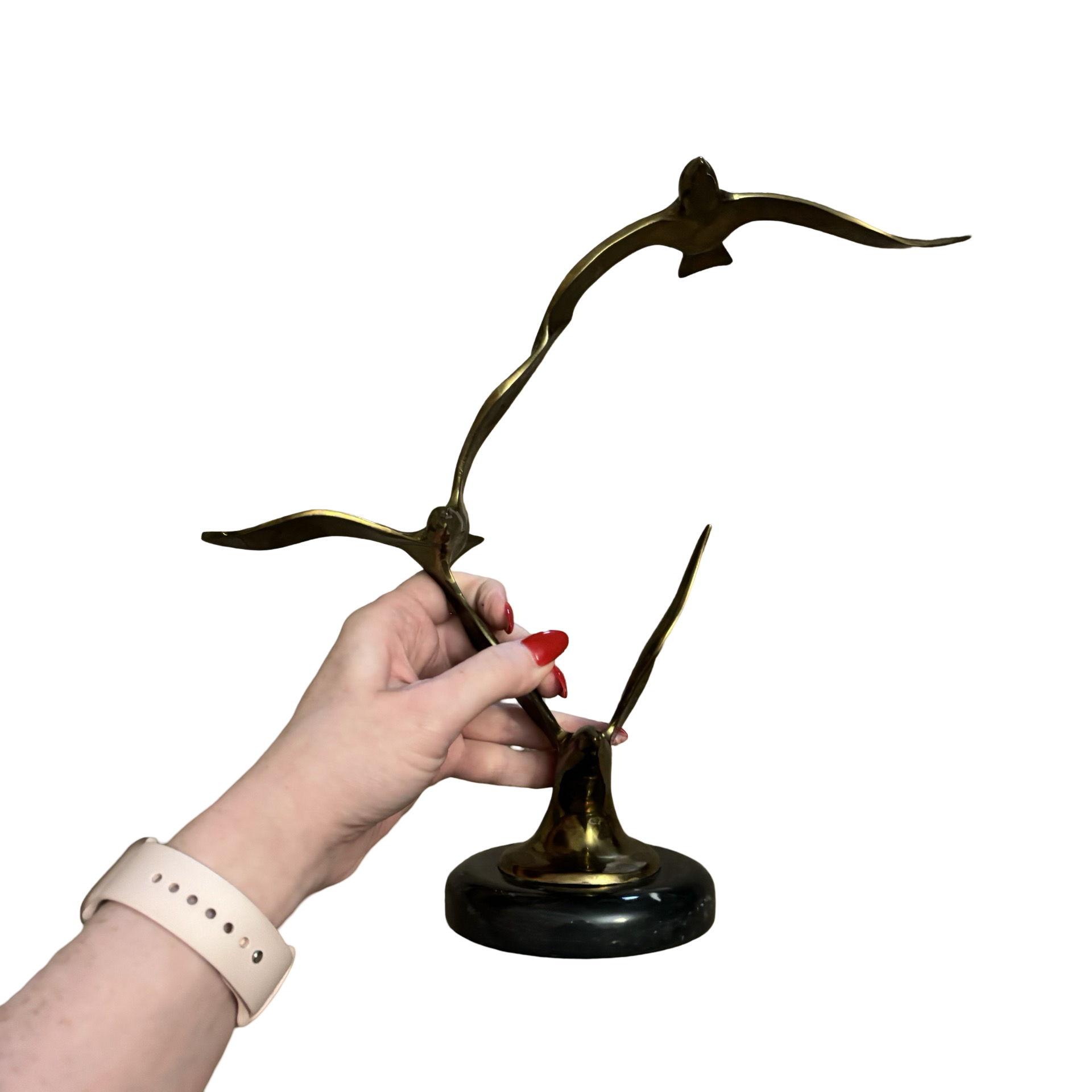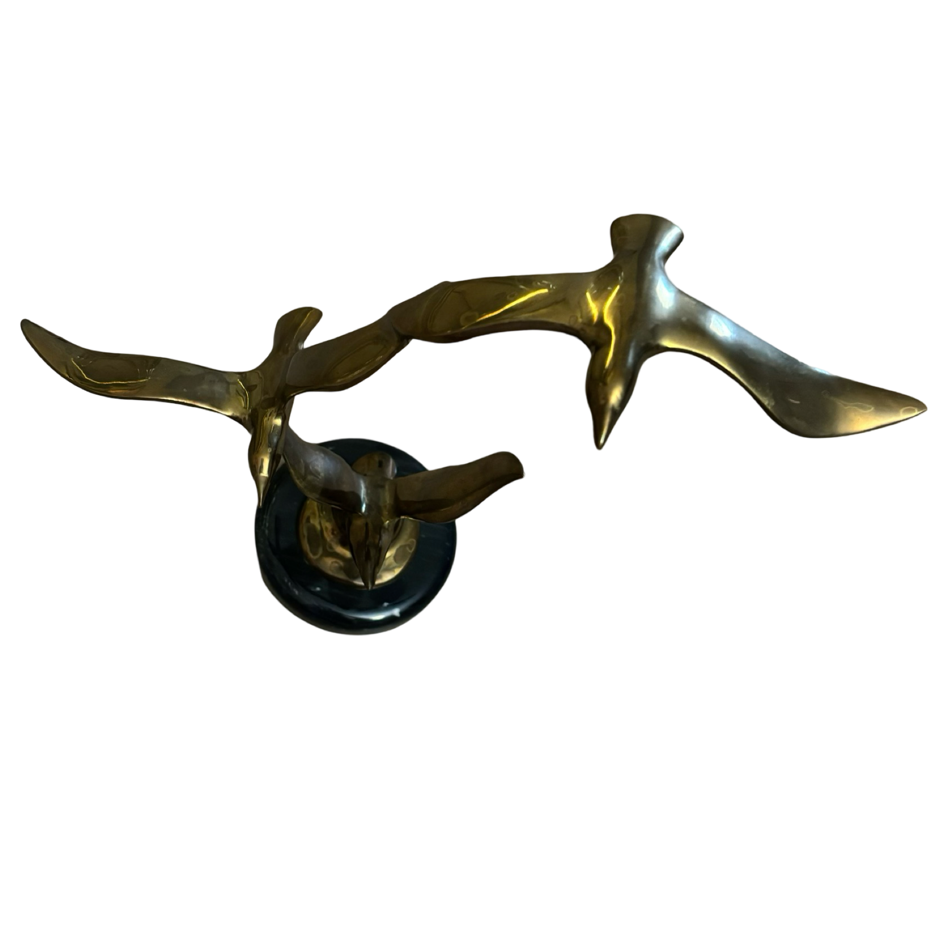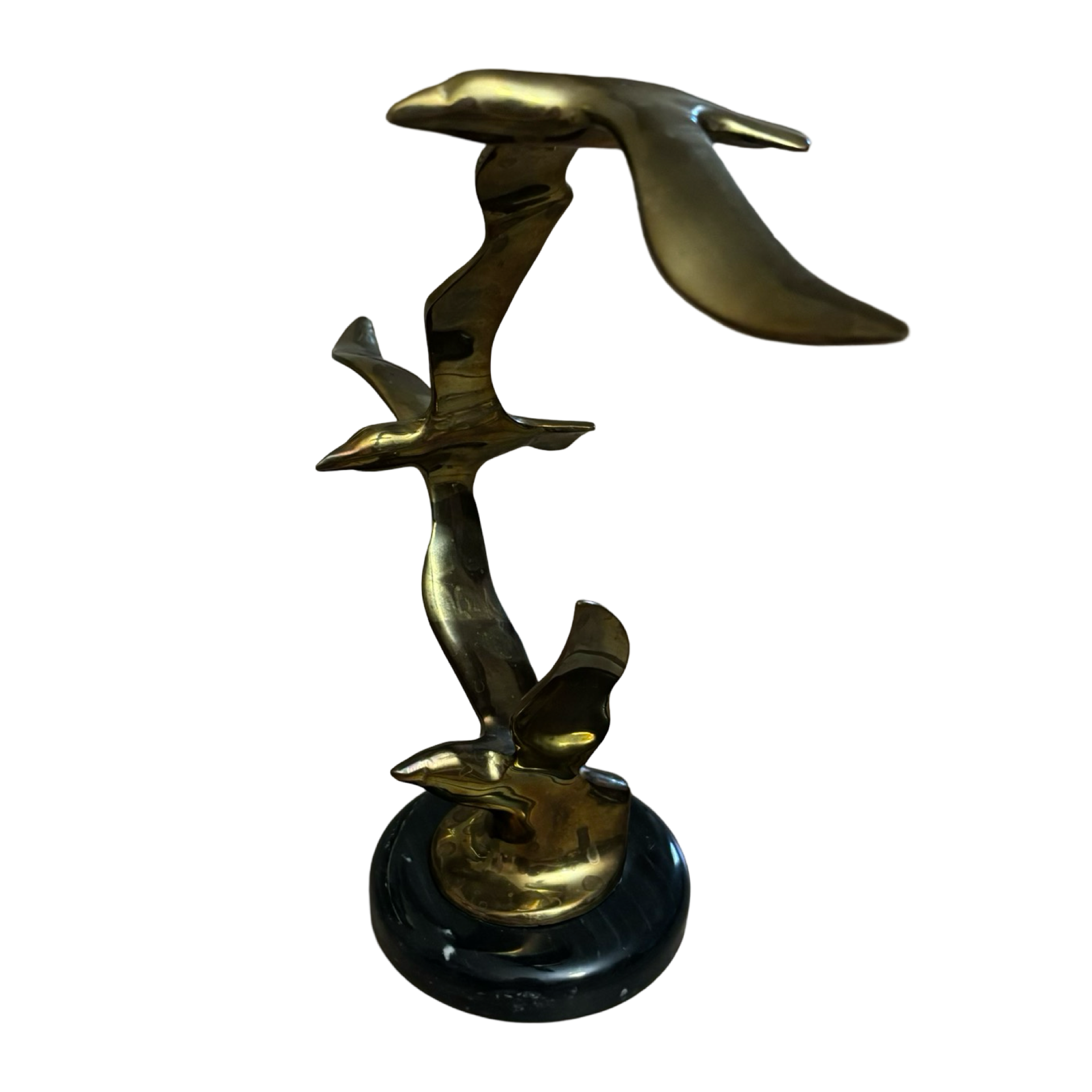 A beautiful brass birds in flight sculpture with a black marble base in good vintage condition.