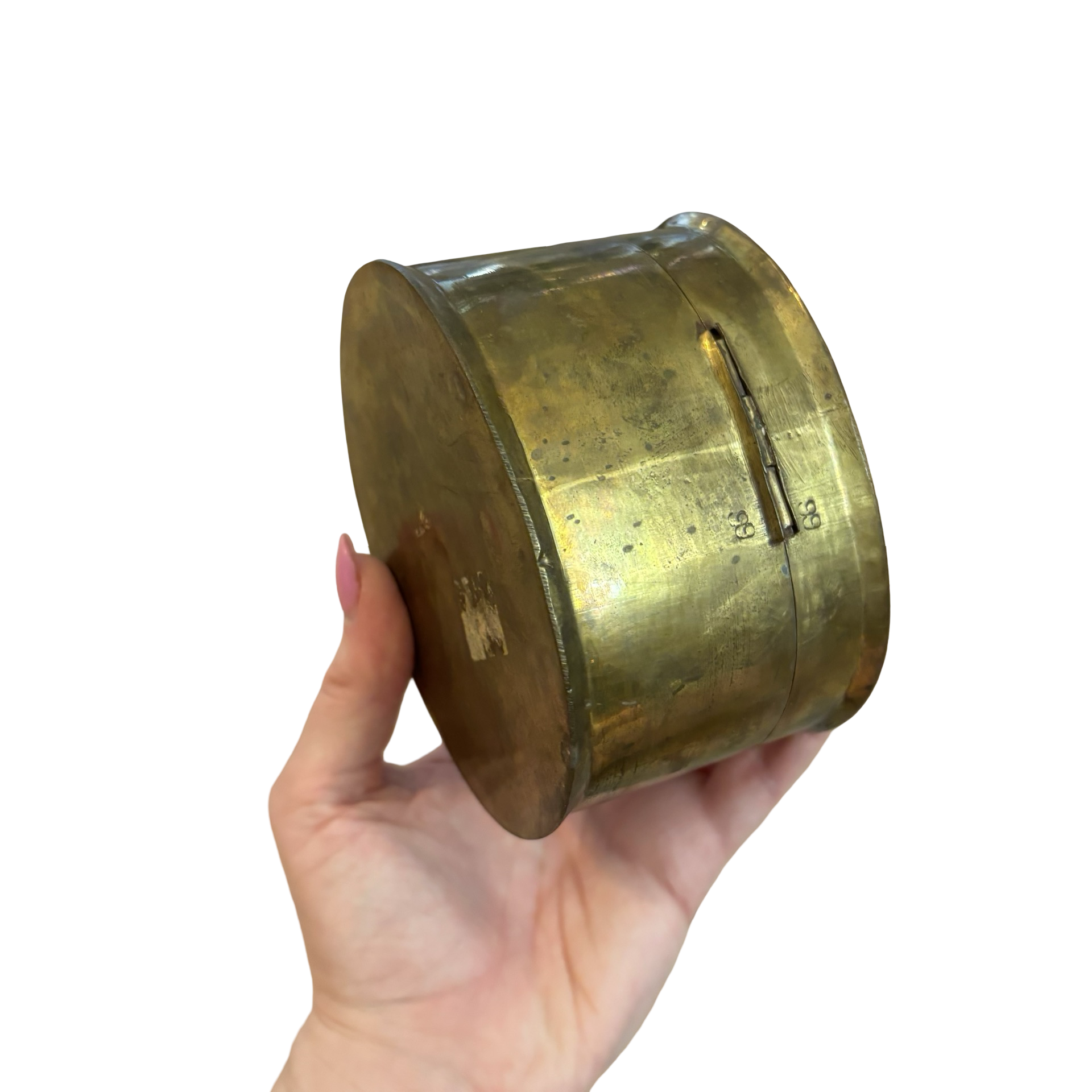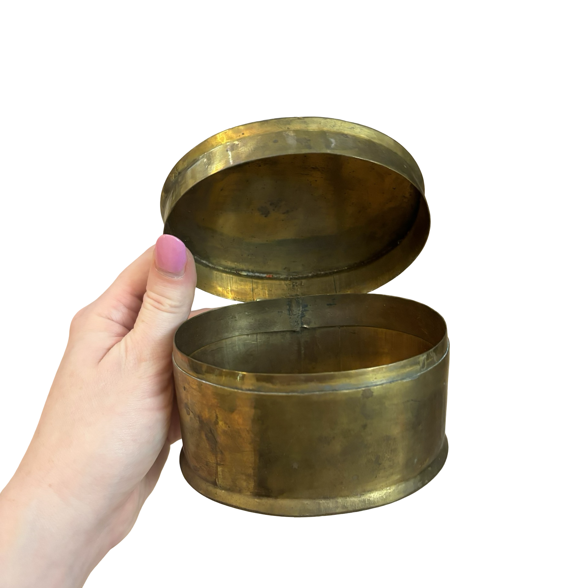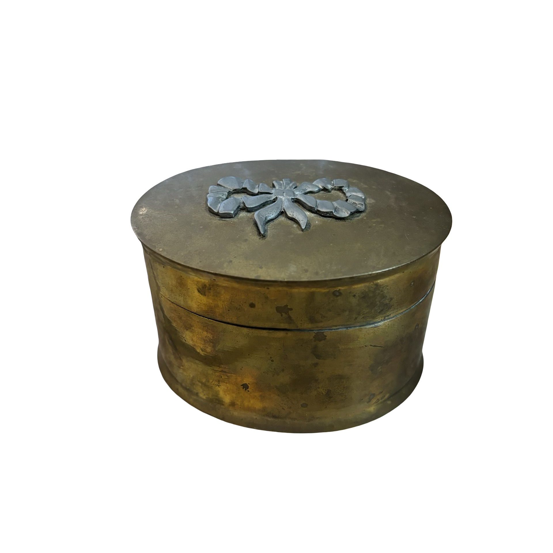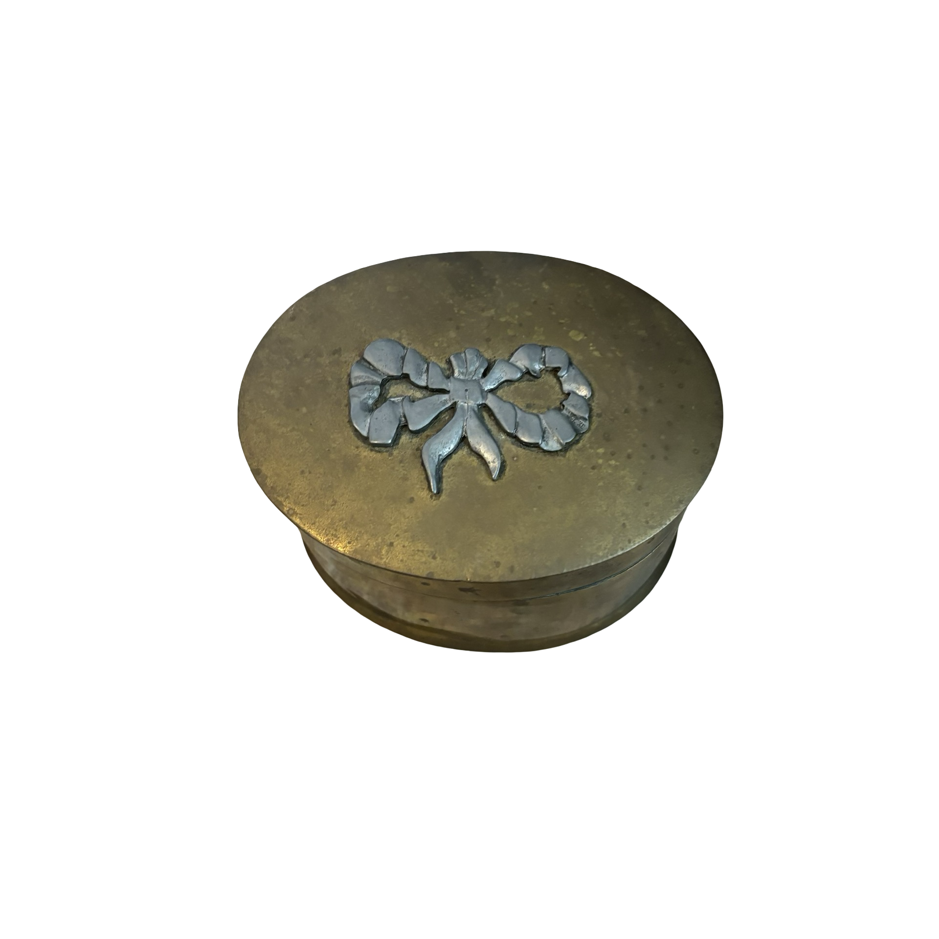 A sweet brass vintage box with a pewter bow detail!