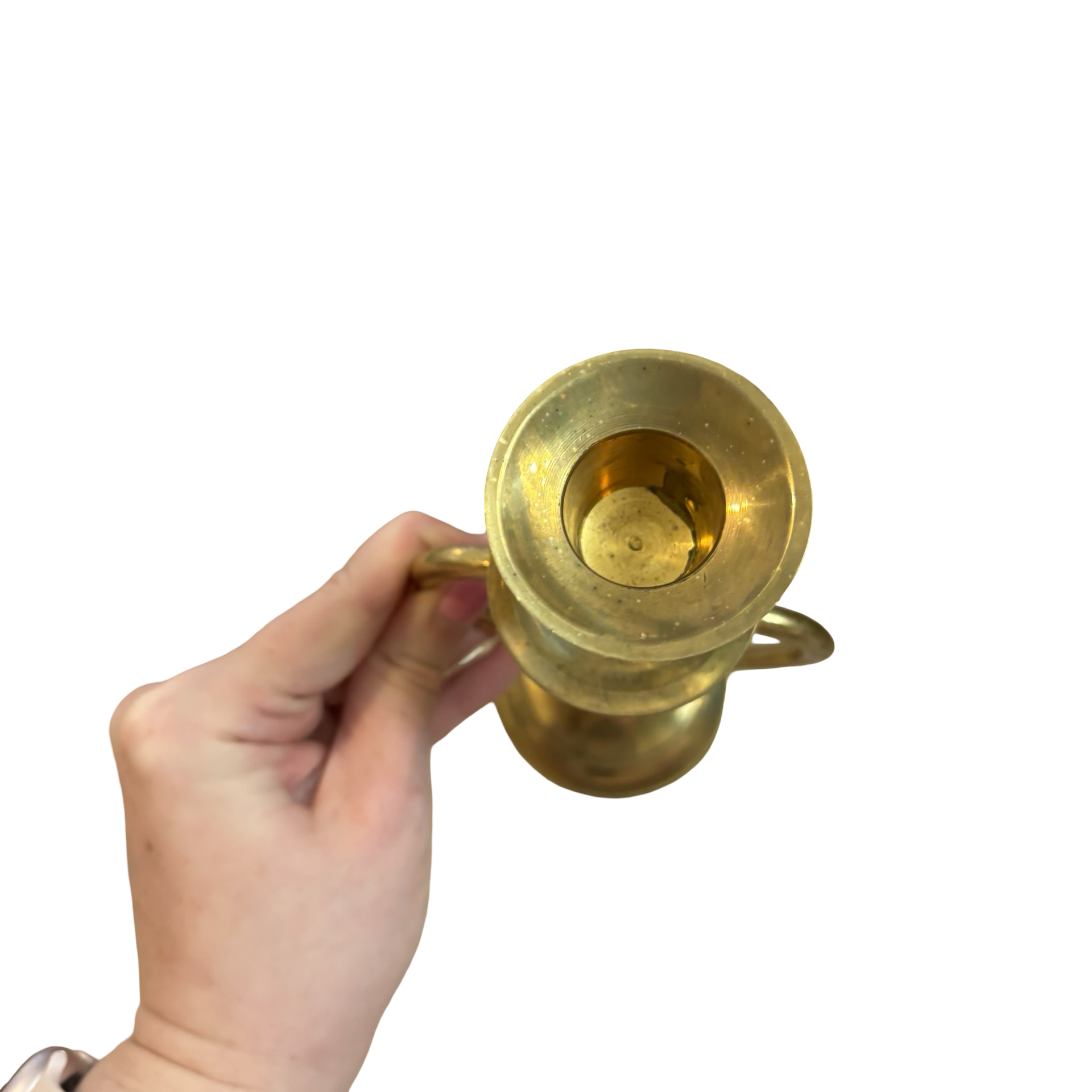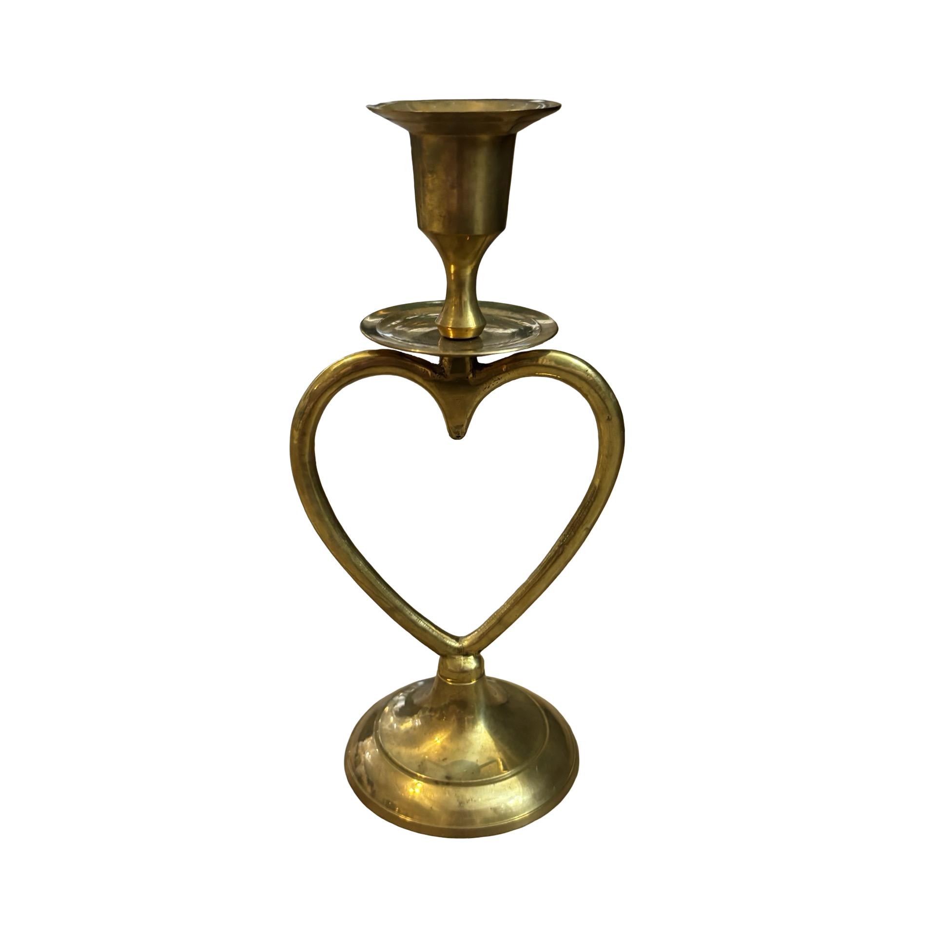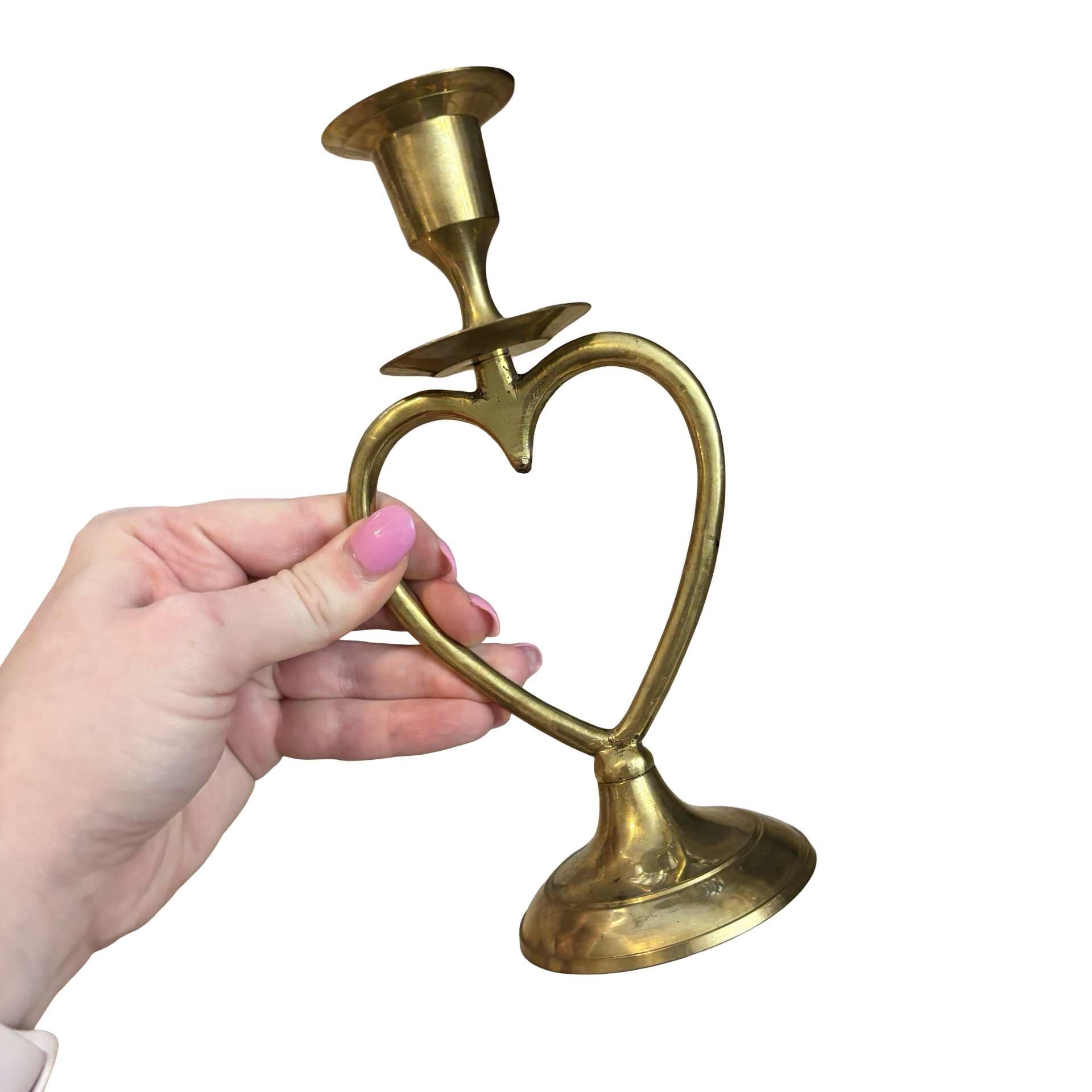 A vintage brass heart candlestick in good condition. Three available at the time of listing.