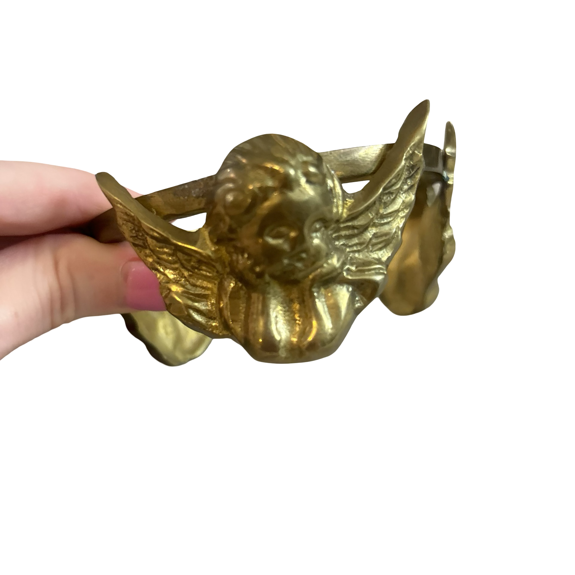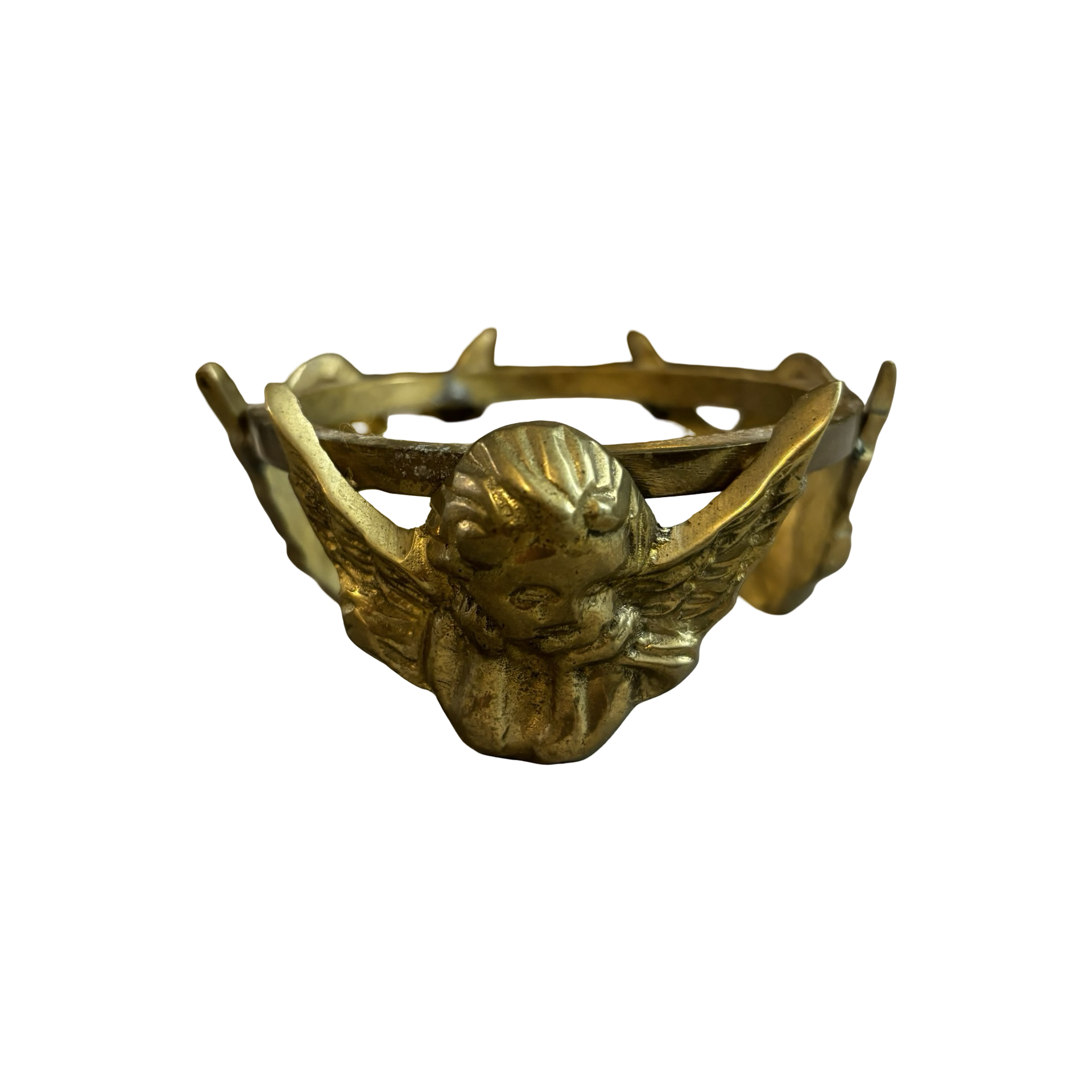 A vintage brass cherub stand in good condition.