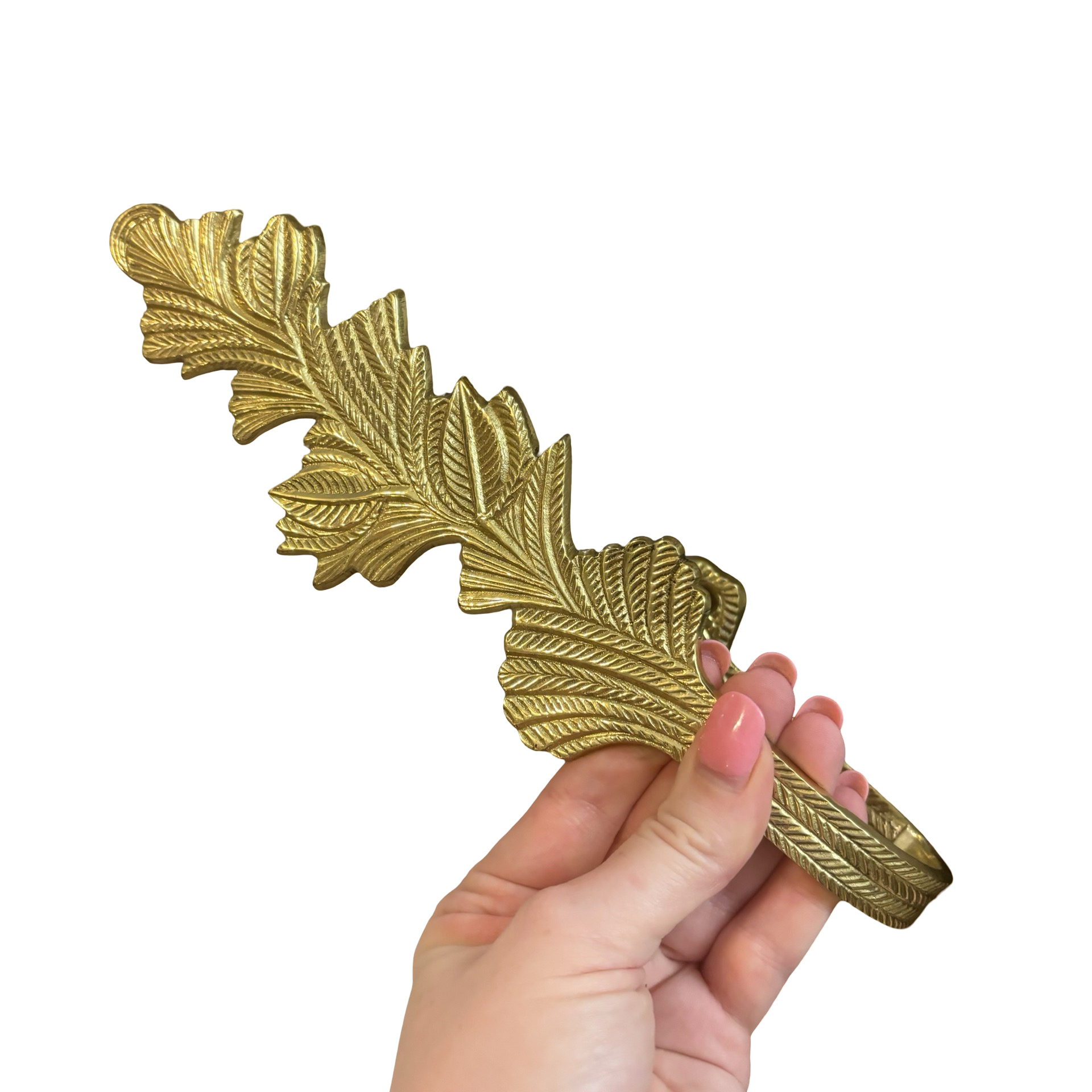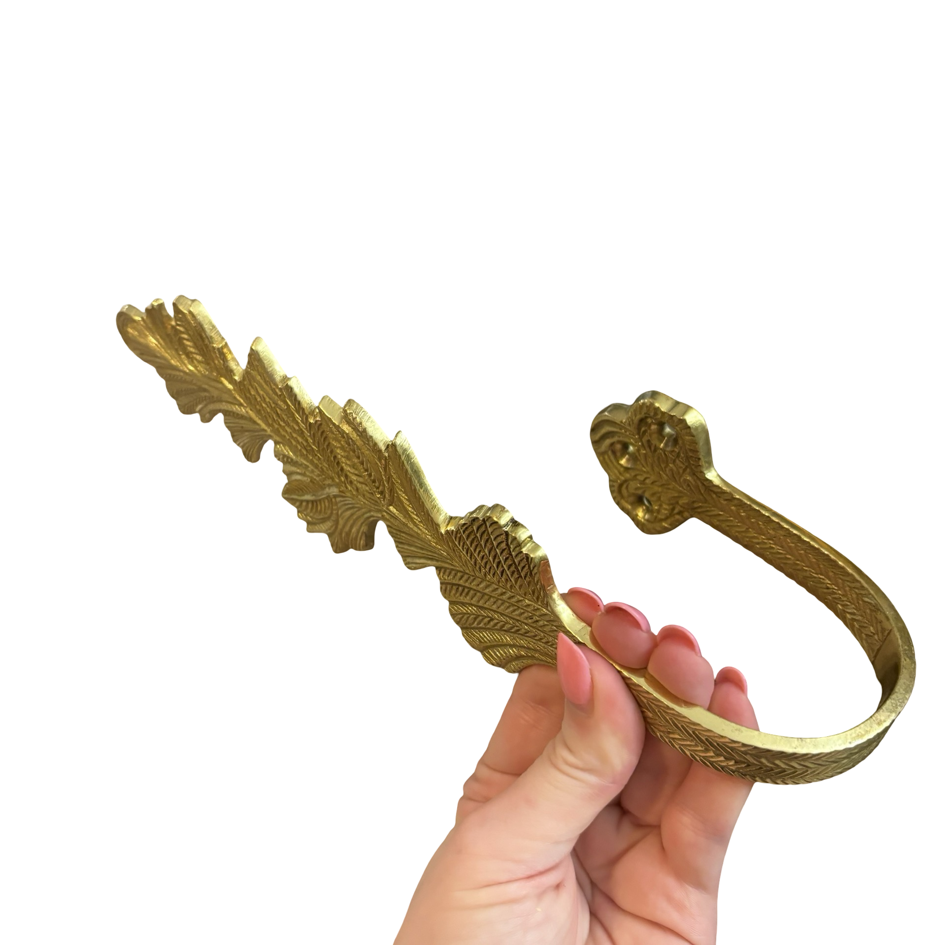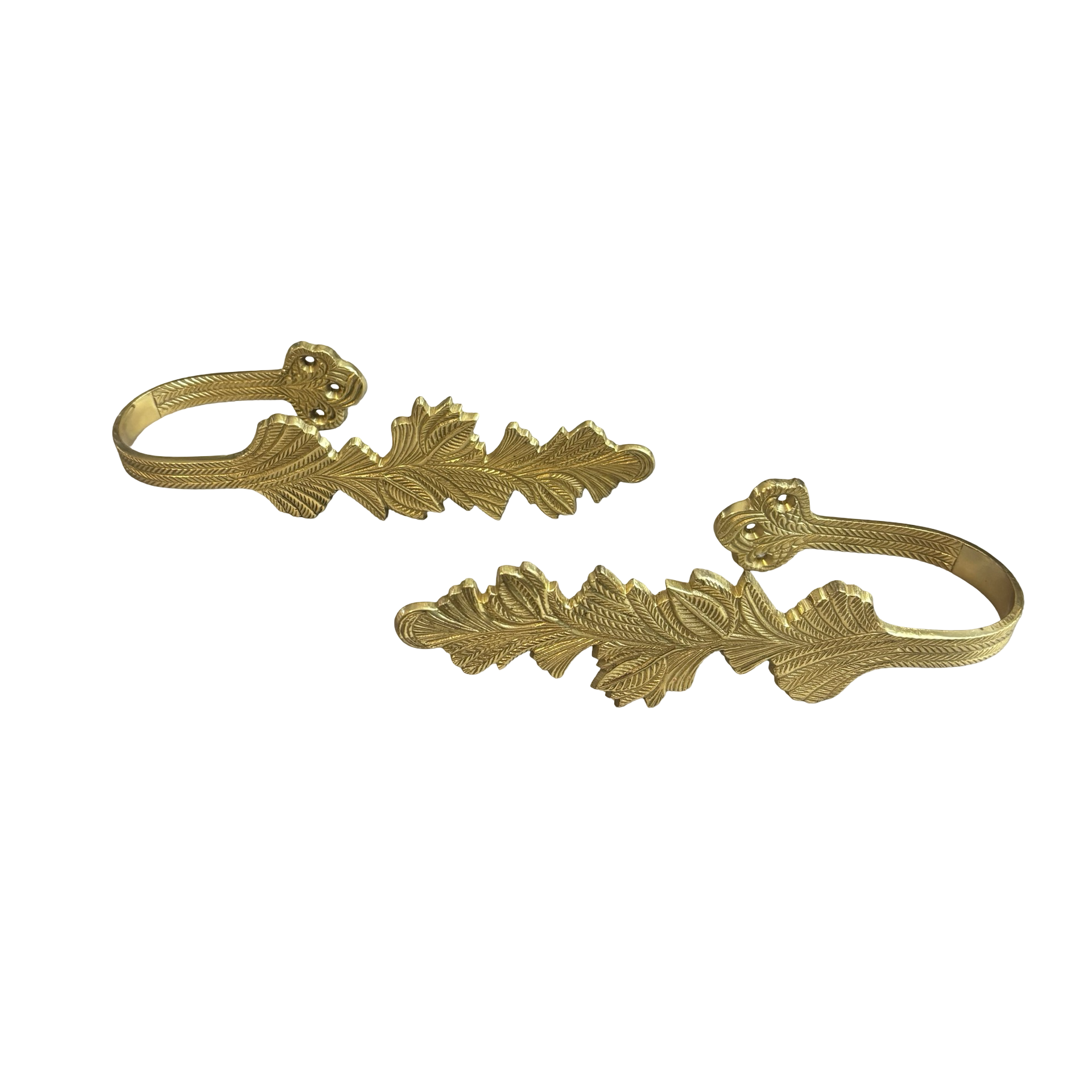 A stunning pair of large vintage brass curtain tie backs in good condition.