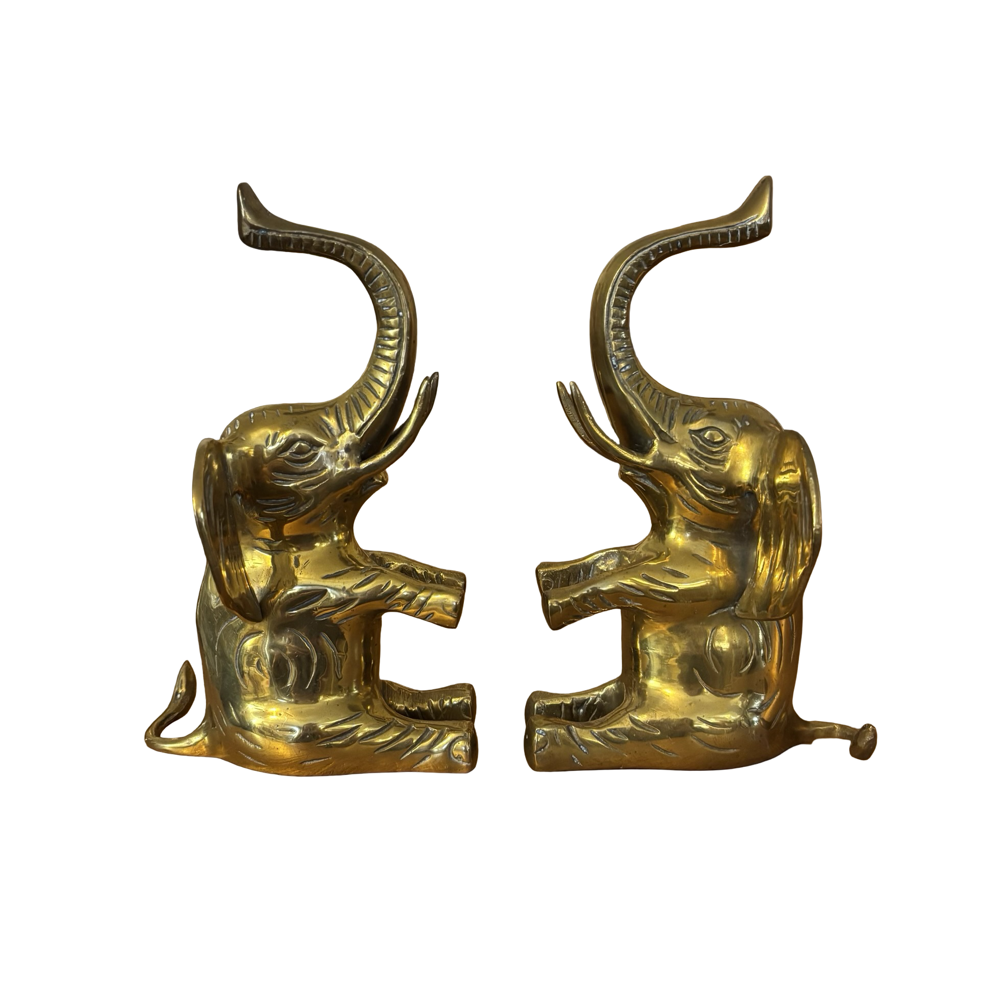 A beautiful set of vintage brass elephant bookends in good condition. Ideal for a study or nursery!