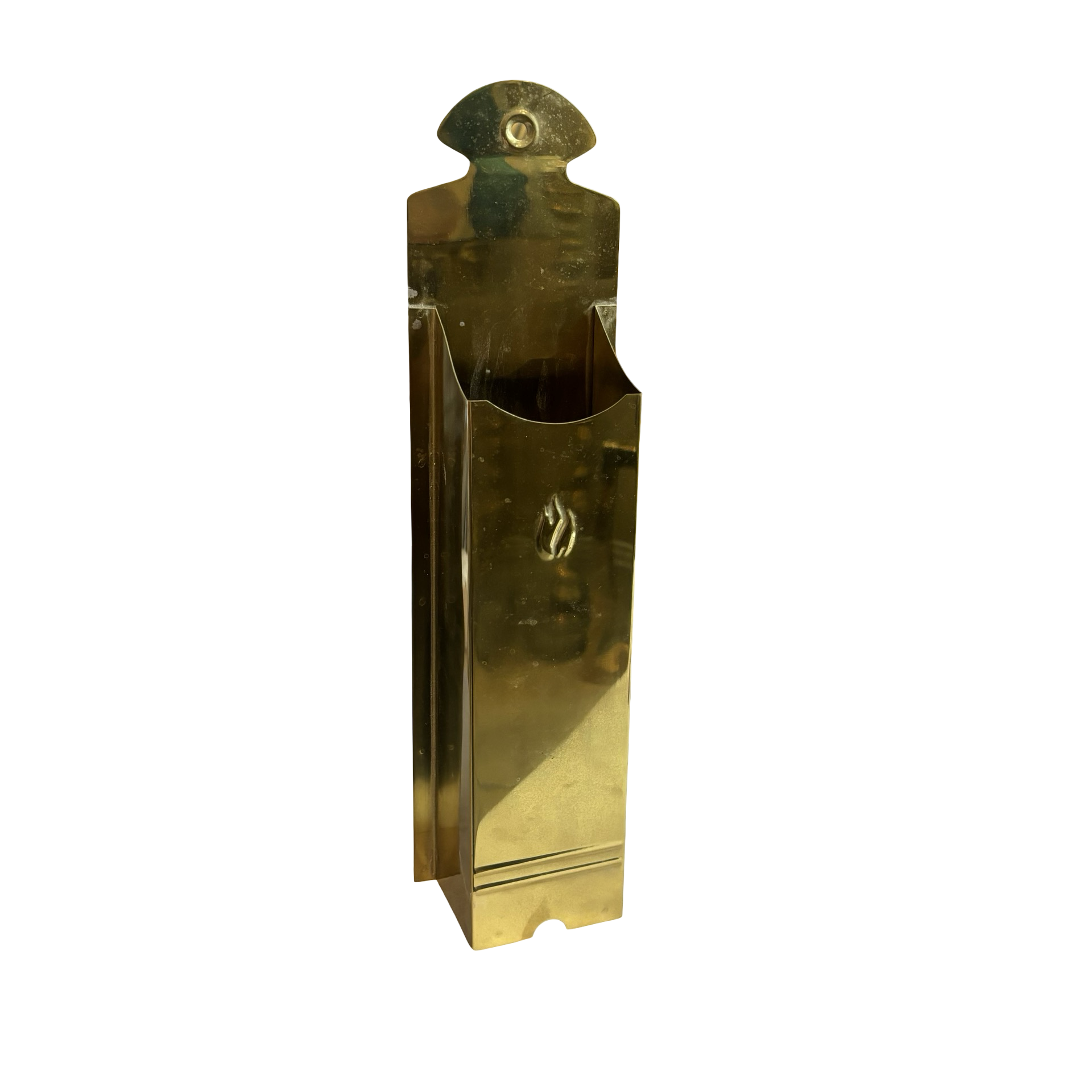 A beautiful vintage brass match holder with a flame embossed on the front.