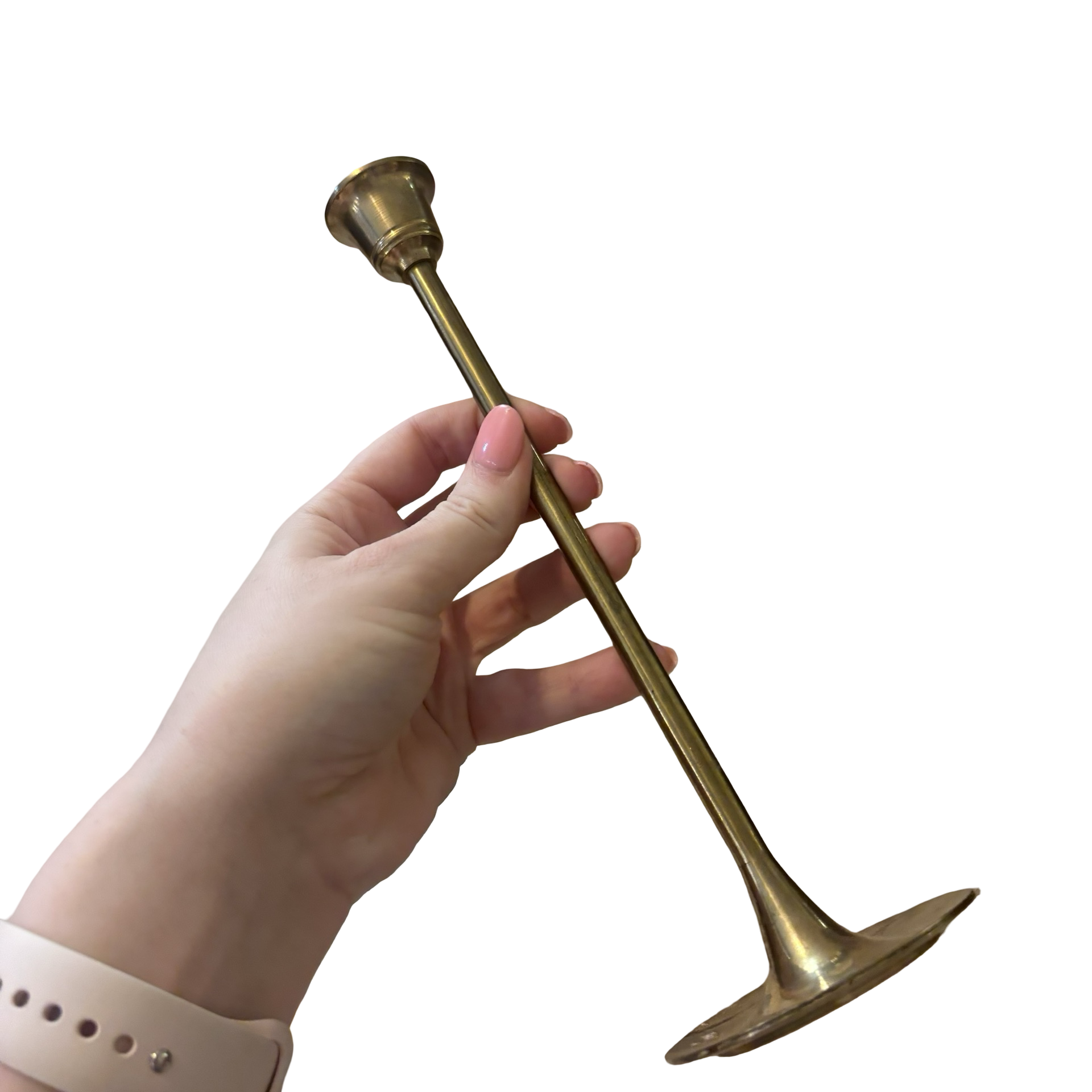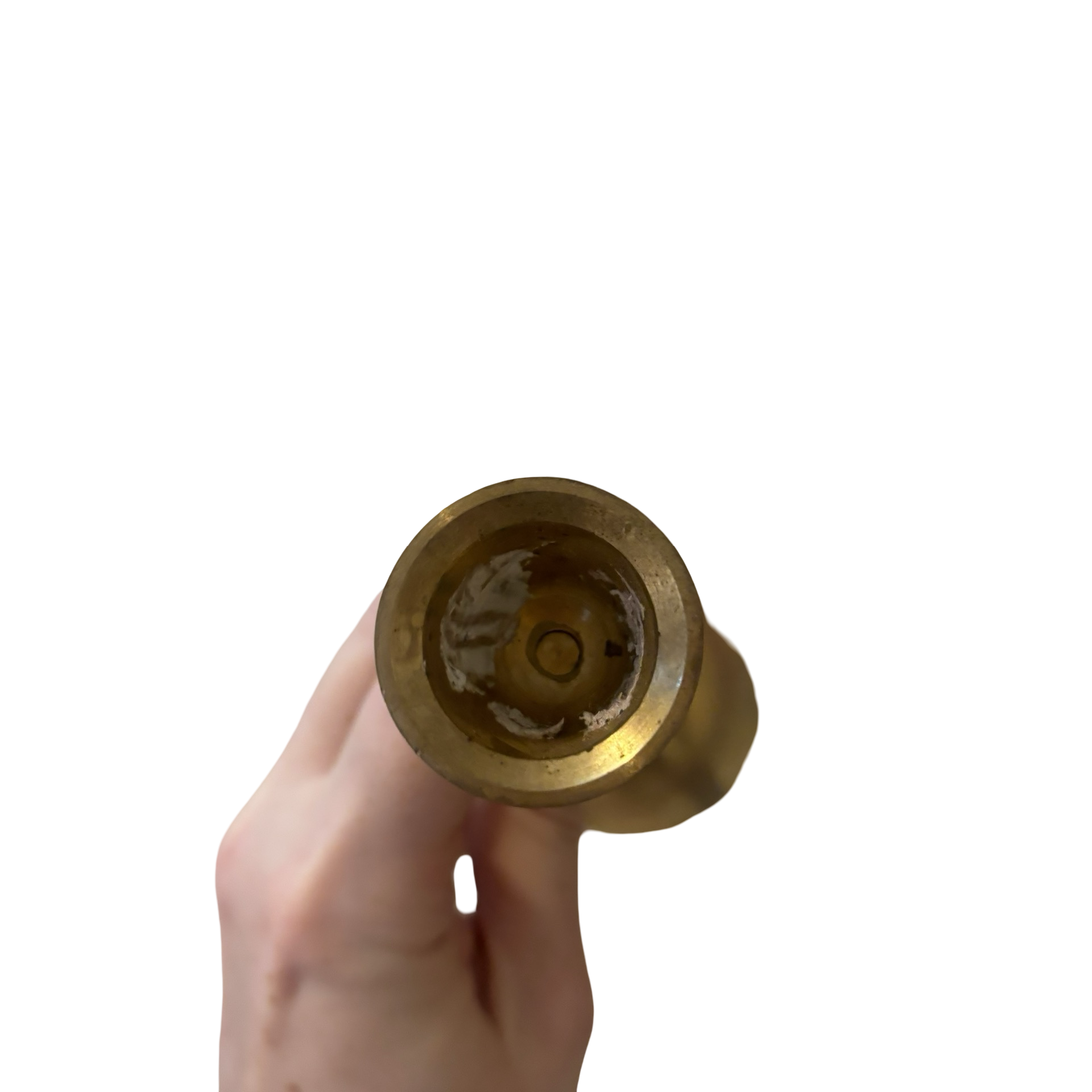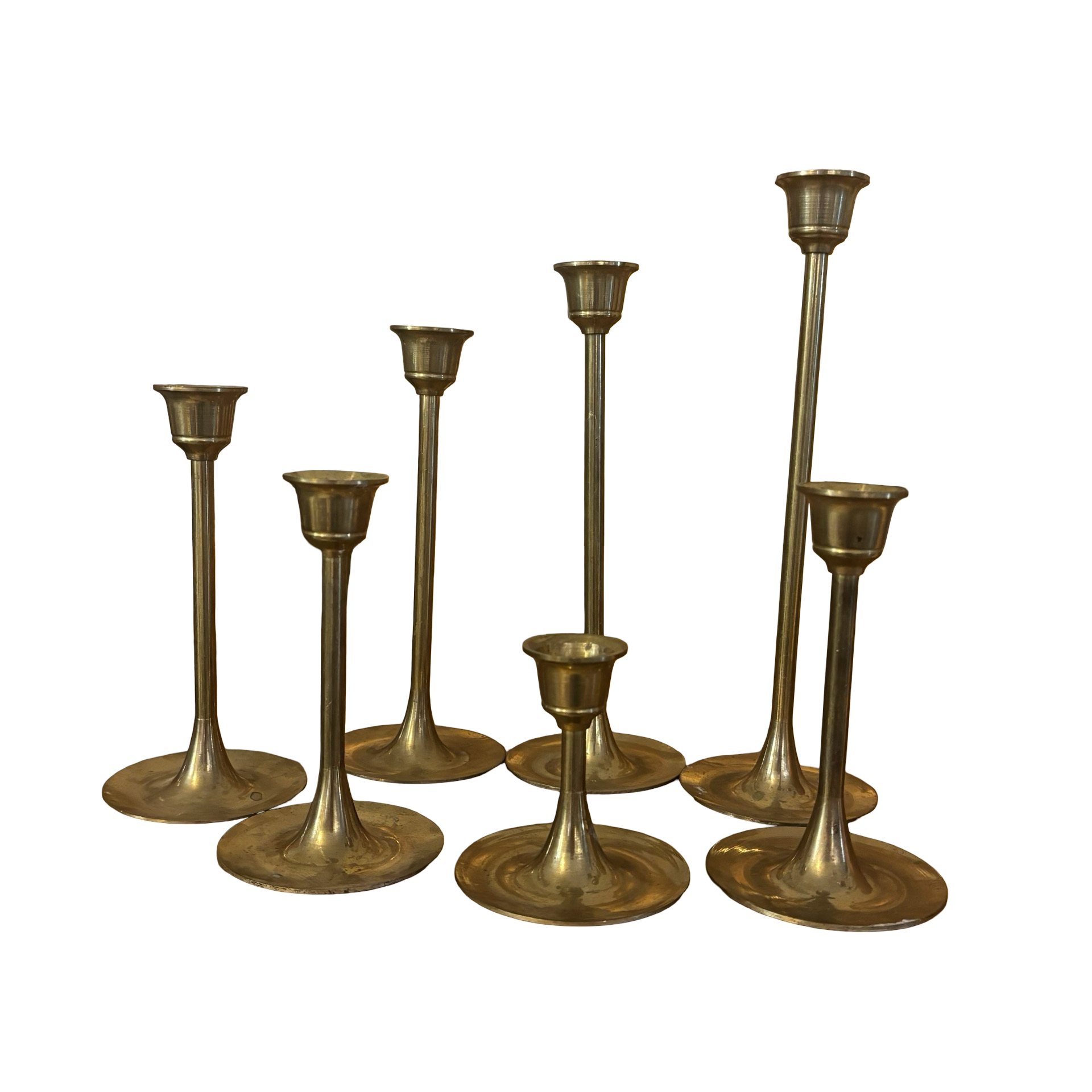 A set of seven graduated vintage brass candlesticks in good condition with some museum putty present in the cups.