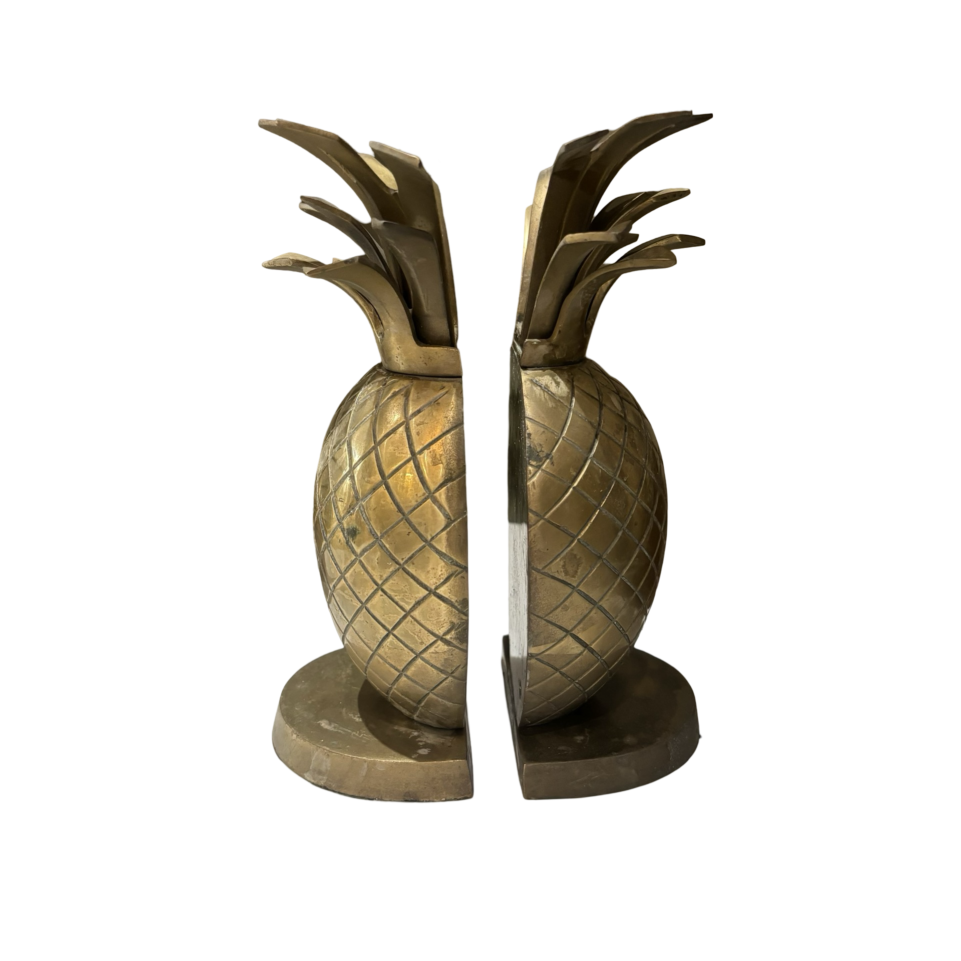 A pair of vintage brass pineapple bookends saved from the Melt Pile.