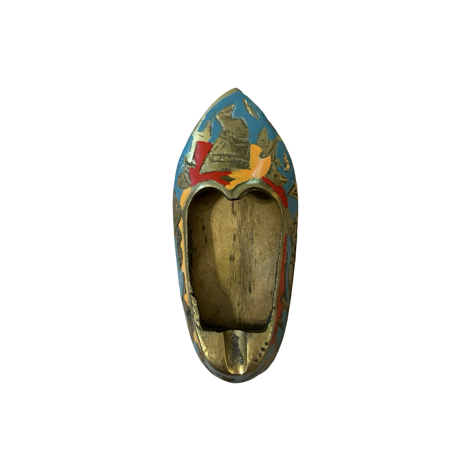 A vintage brass shoe ashtray! Cute and useful. I love the pop of color from the enamel!