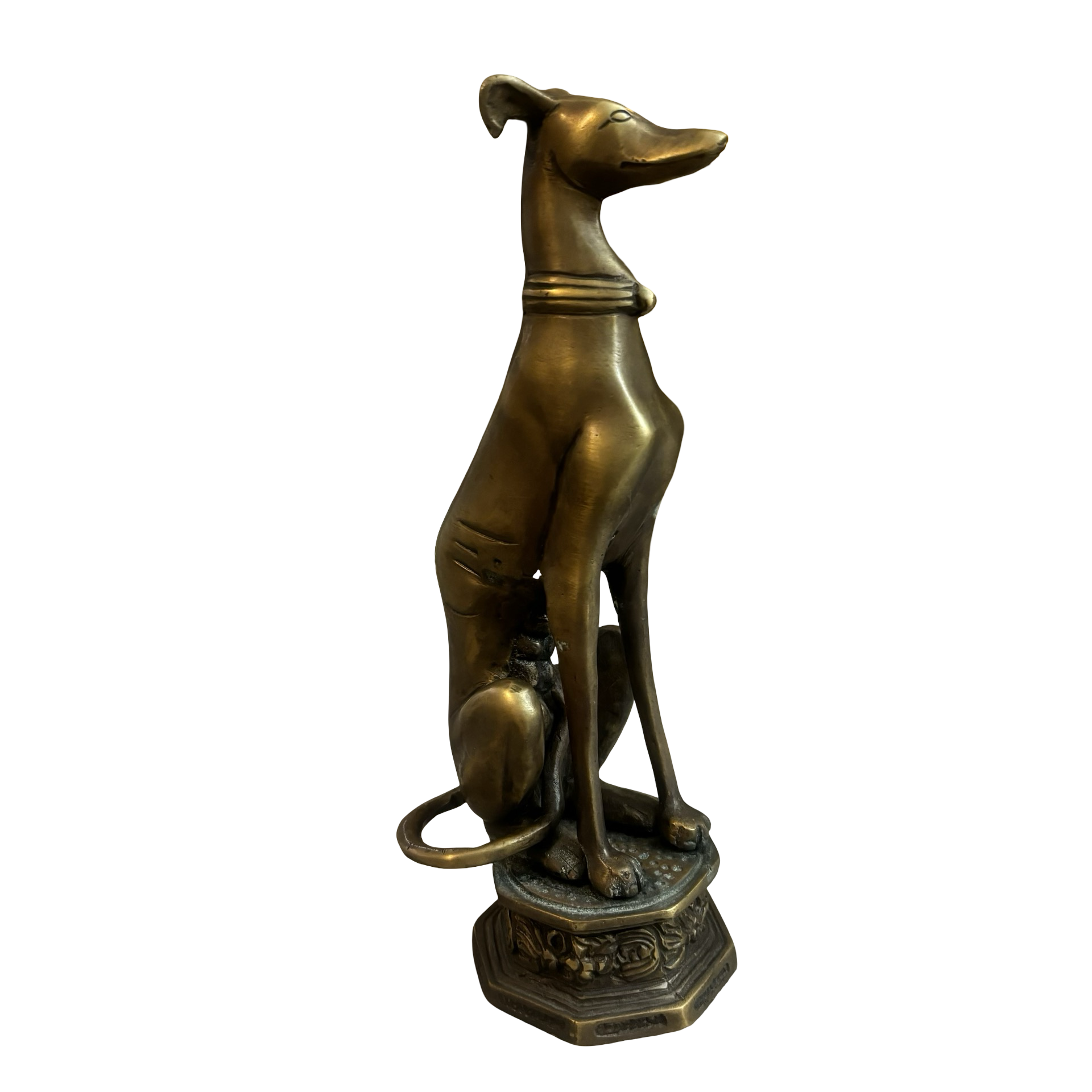 A stunning bronze figurine of a greyhound or whippet with extreme attention to detail! This piece is so lovely.