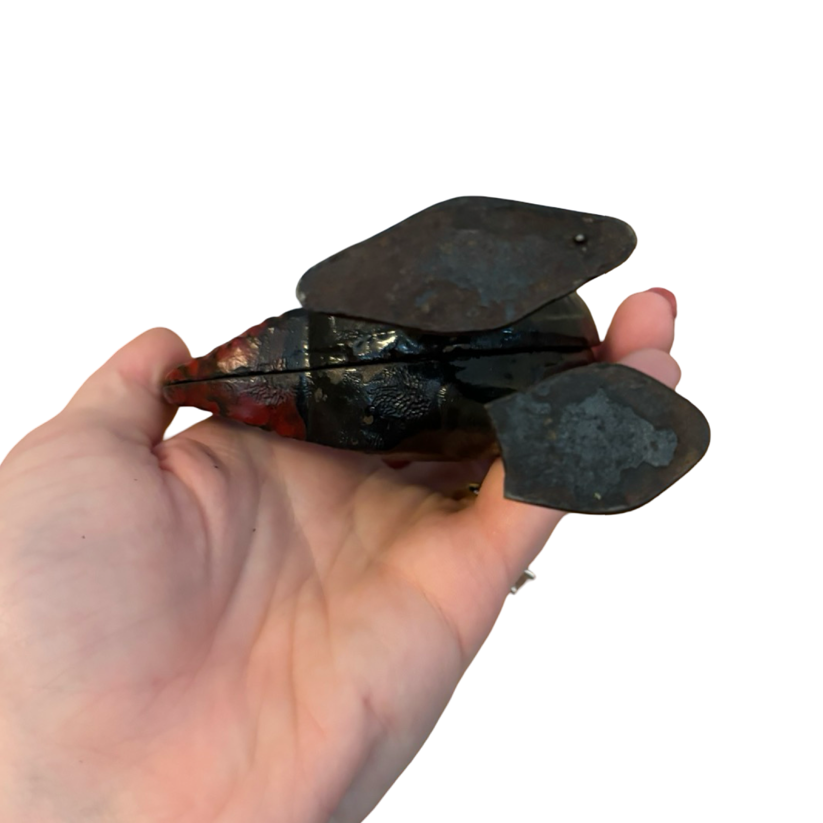 A stunning and quite unique vintage cast iron rooster chicken bank. These are quite sought after and hard to come by! One foot has a moulding error but it still stands perfectly!