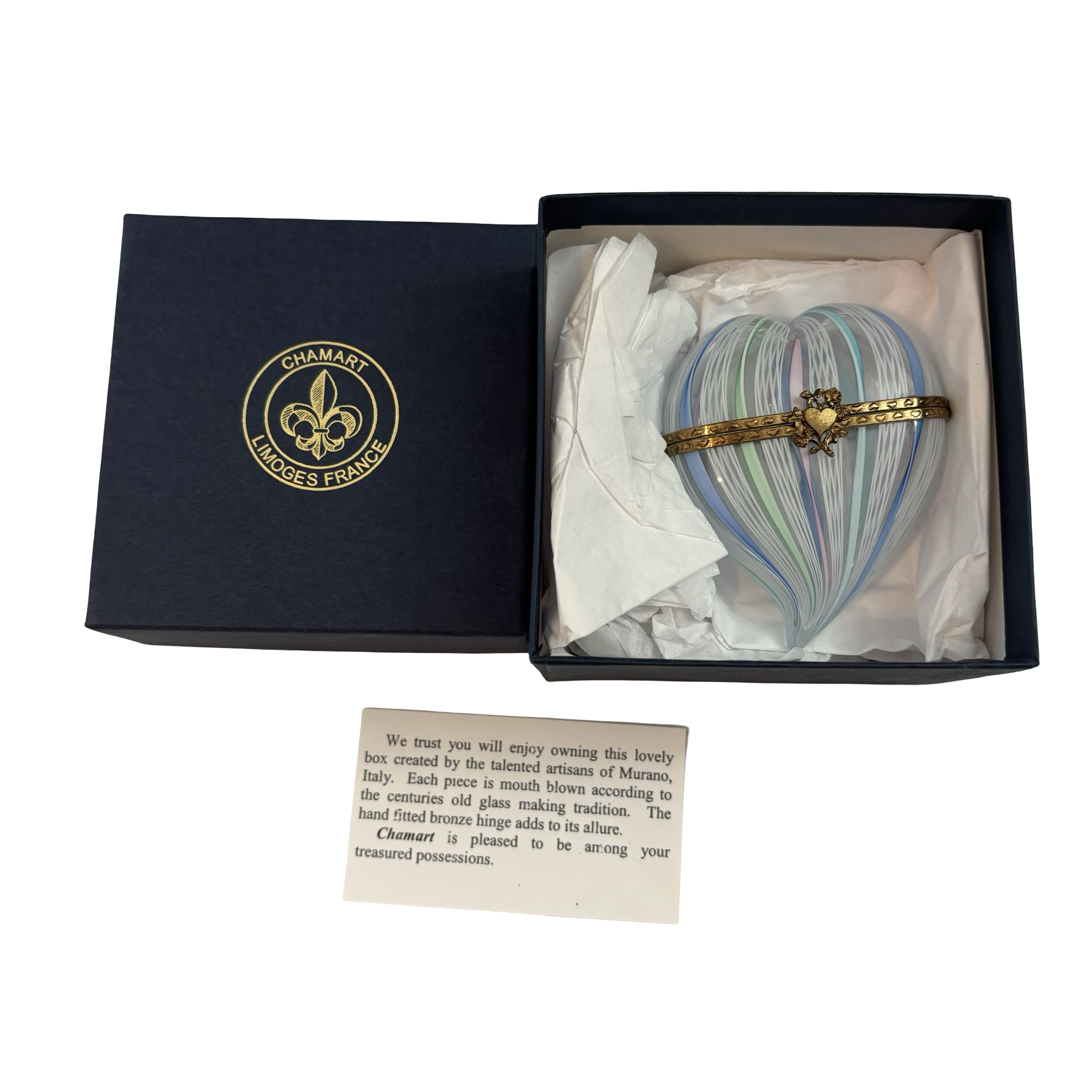 Chamart Latticino Filligrana Murano Glass Heart Box