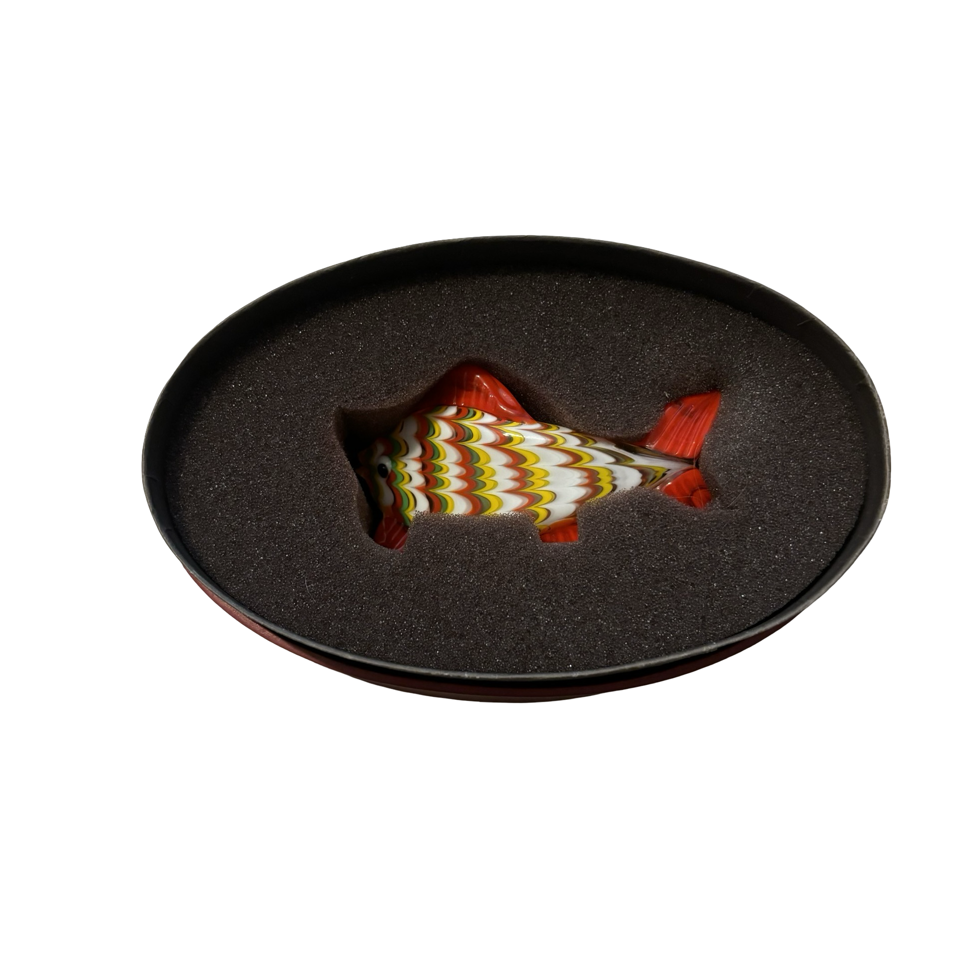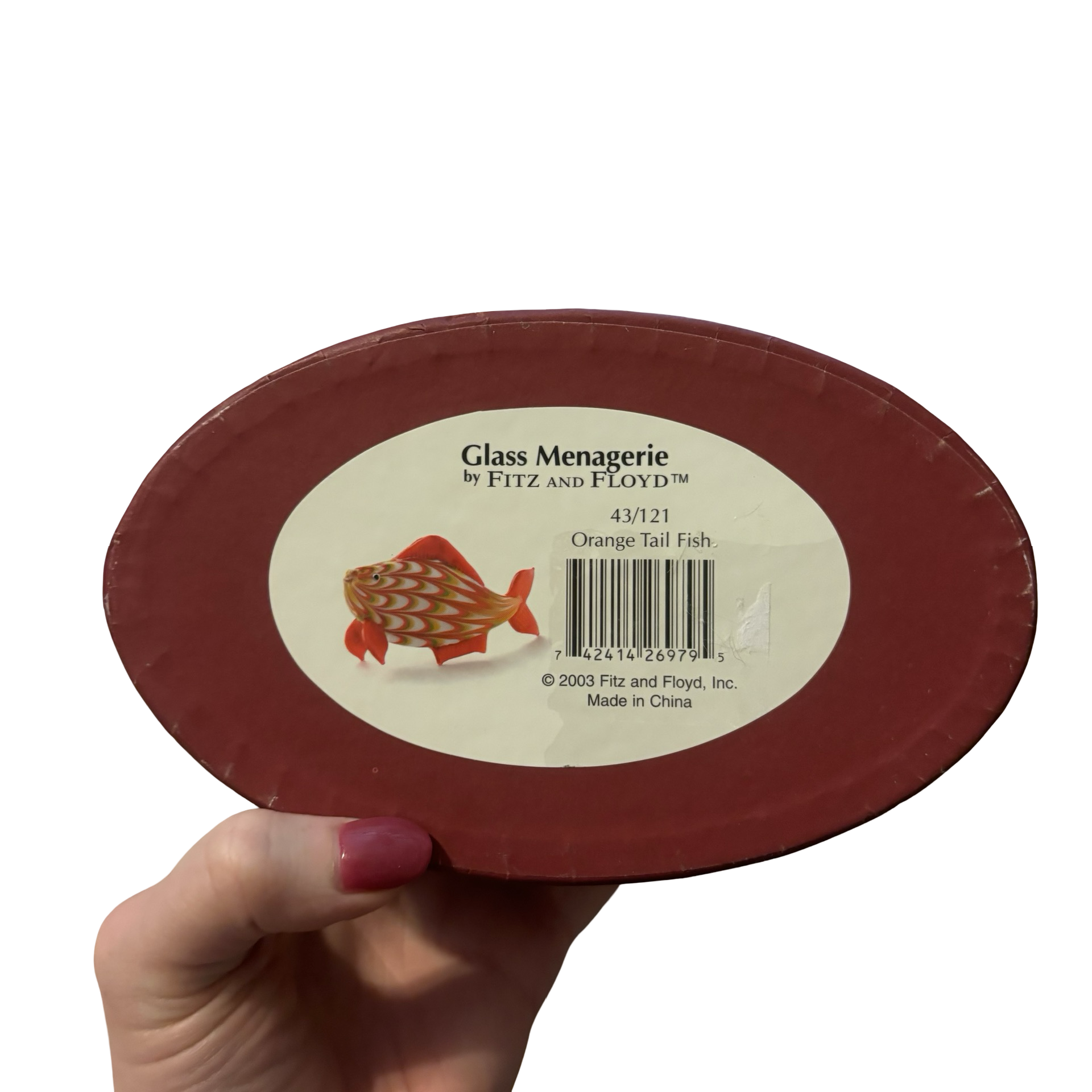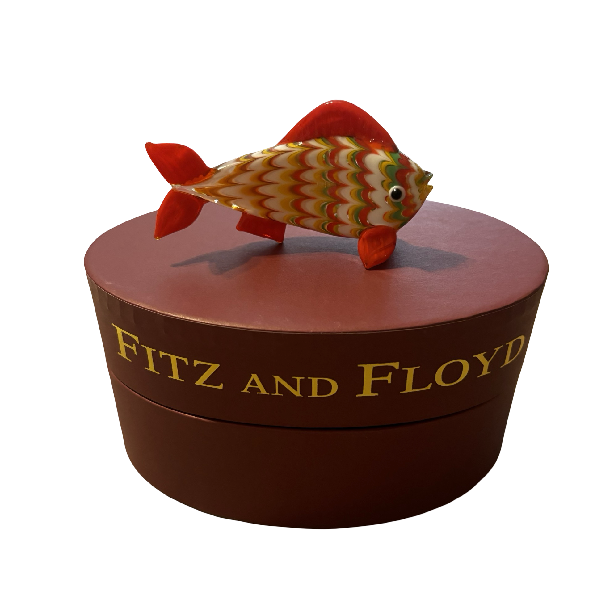 A vintage collectible glass Orange Tail fish by Fitz and Floyd with original box.