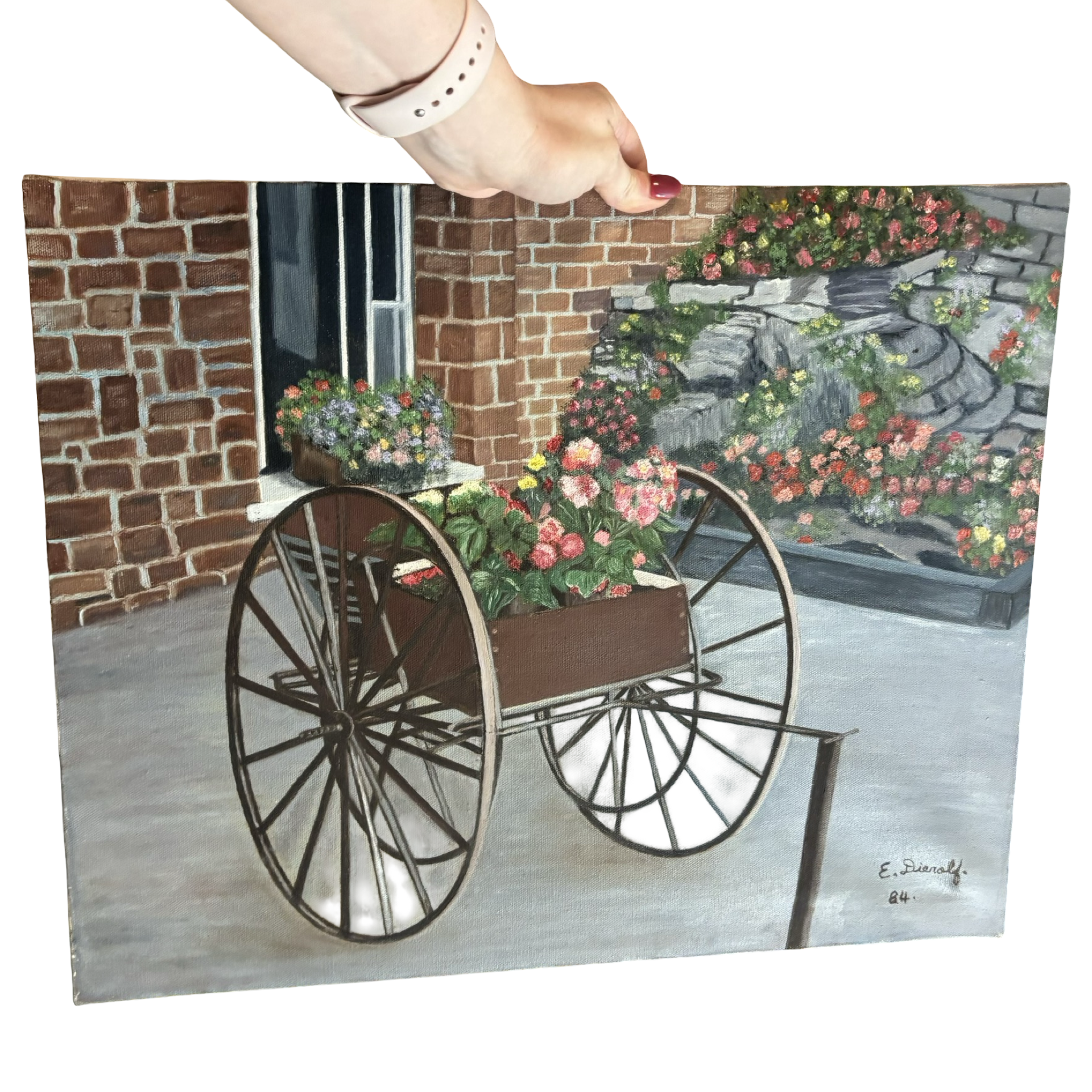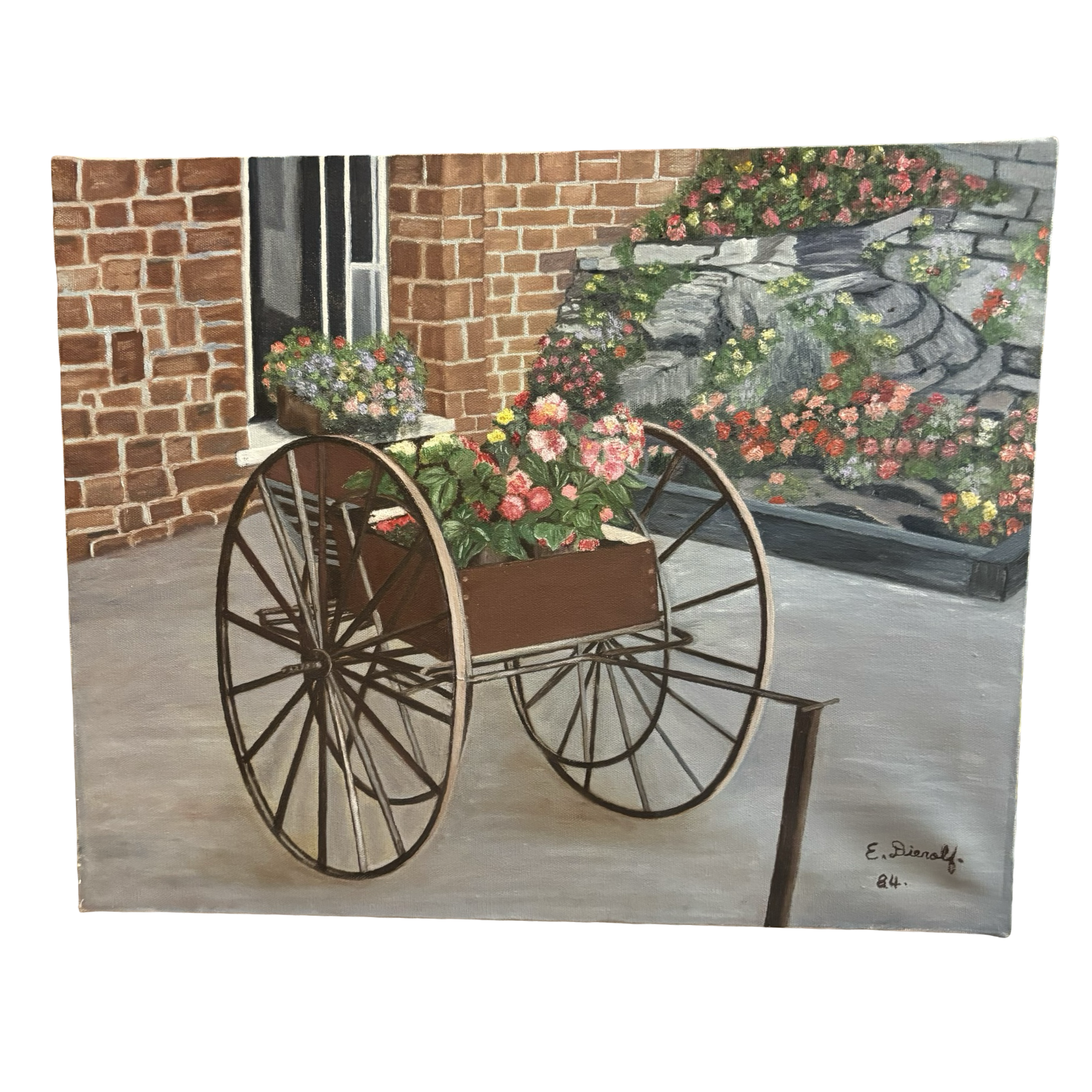 Large original painting on canvas from the 80s. Signed and dated. Some wear.