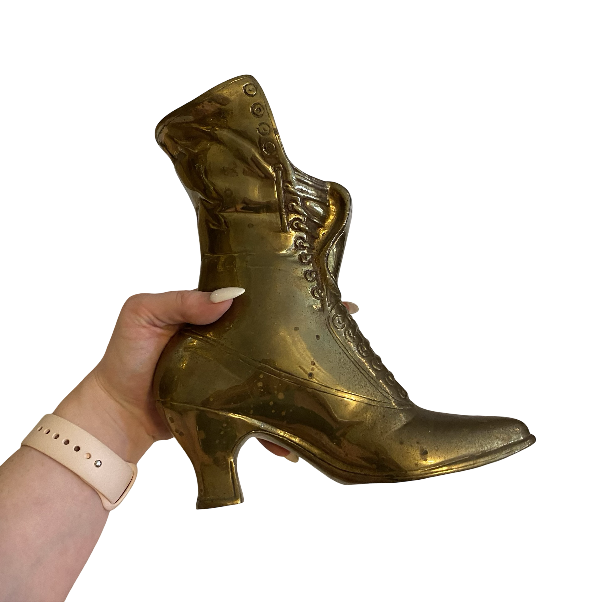 A beautiful vintage brass boot vase.