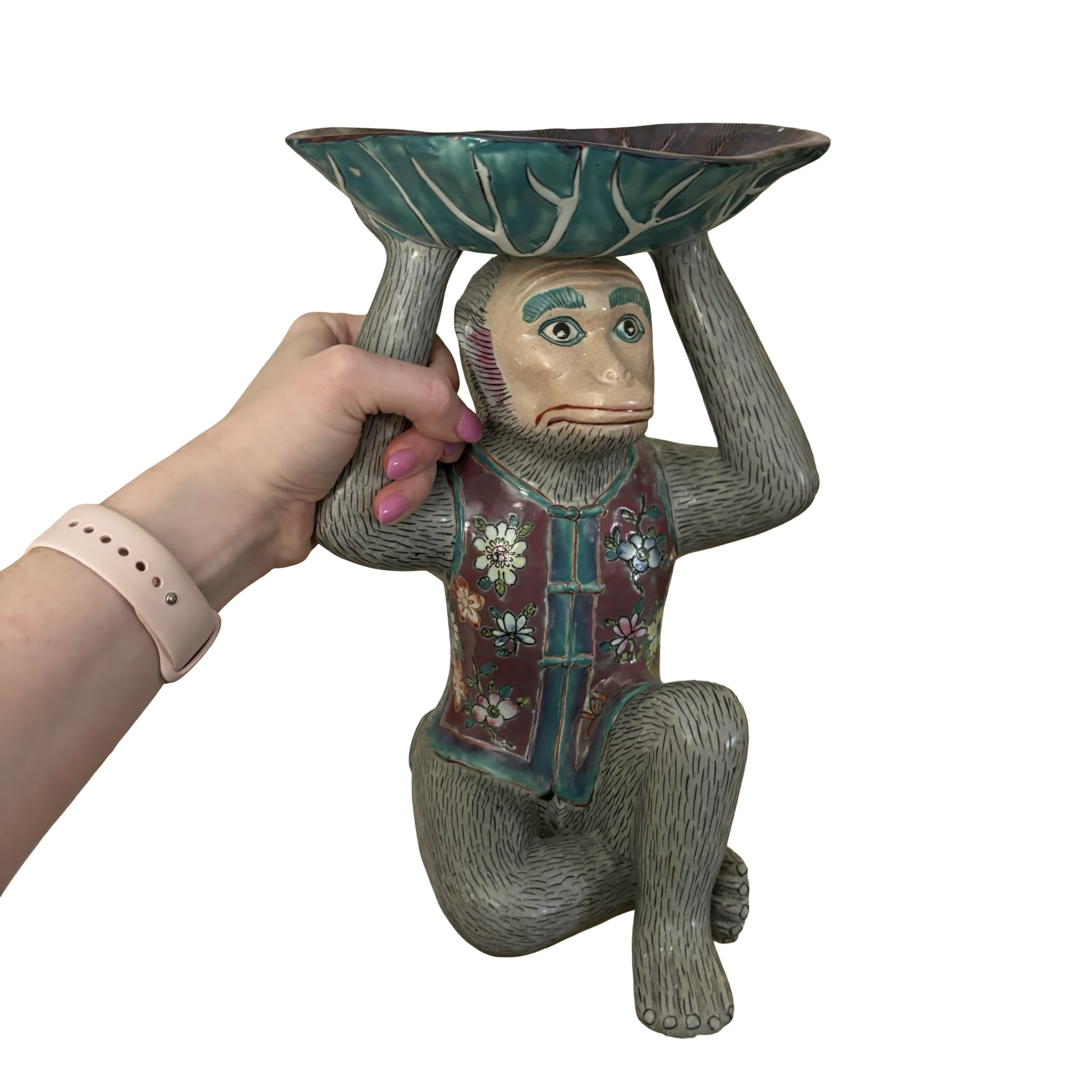 A massive vintage porcelain monkey in good vintage condition. Ideal for holding limes in your kitchen or on a bar cart! This stunning piece is both functional and exceptionally beautiful.