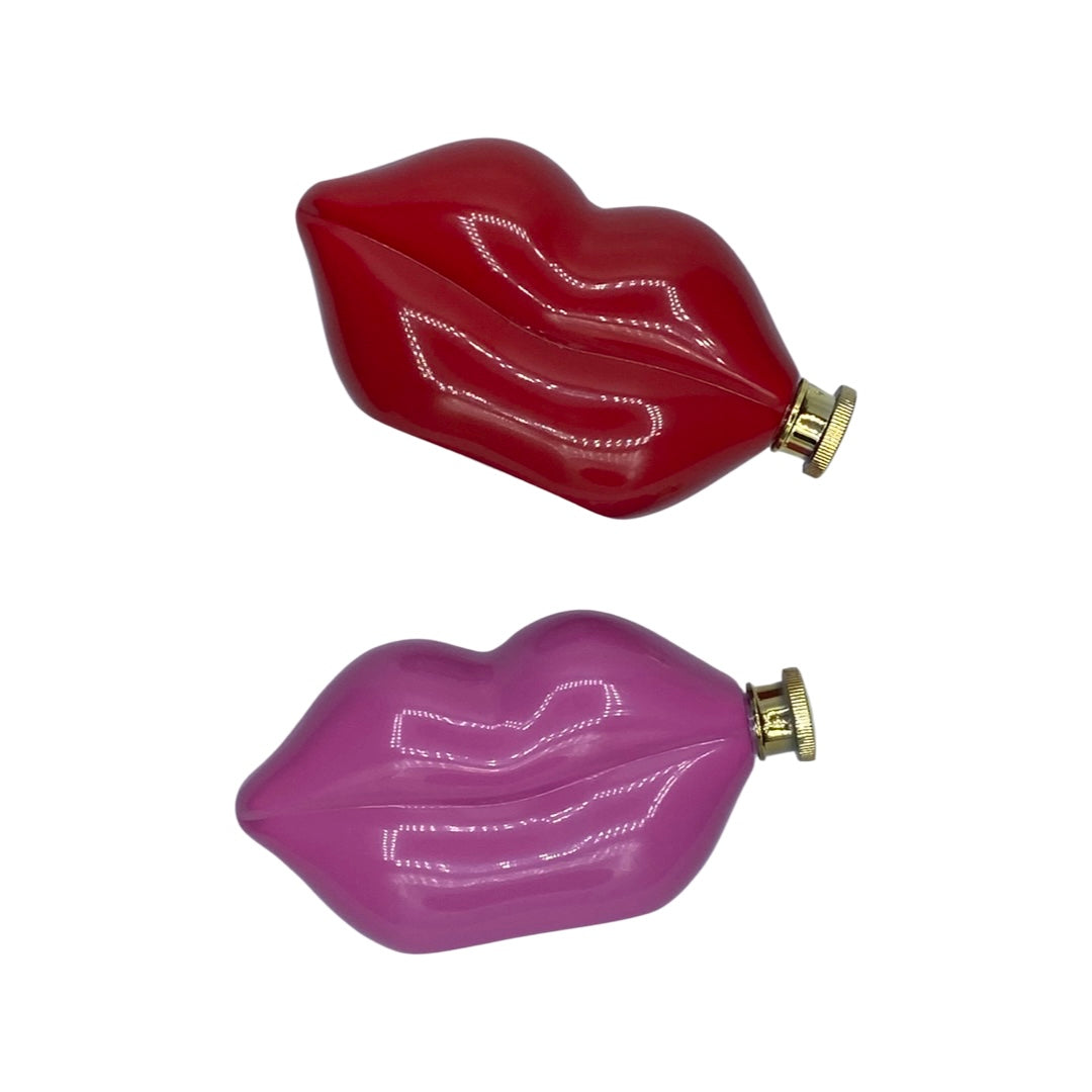 You need this for your bar cart! Brand new lips flasks in red and pink, perfect for a Y2K aesthetic. Each holds 5 fluid ounces.
