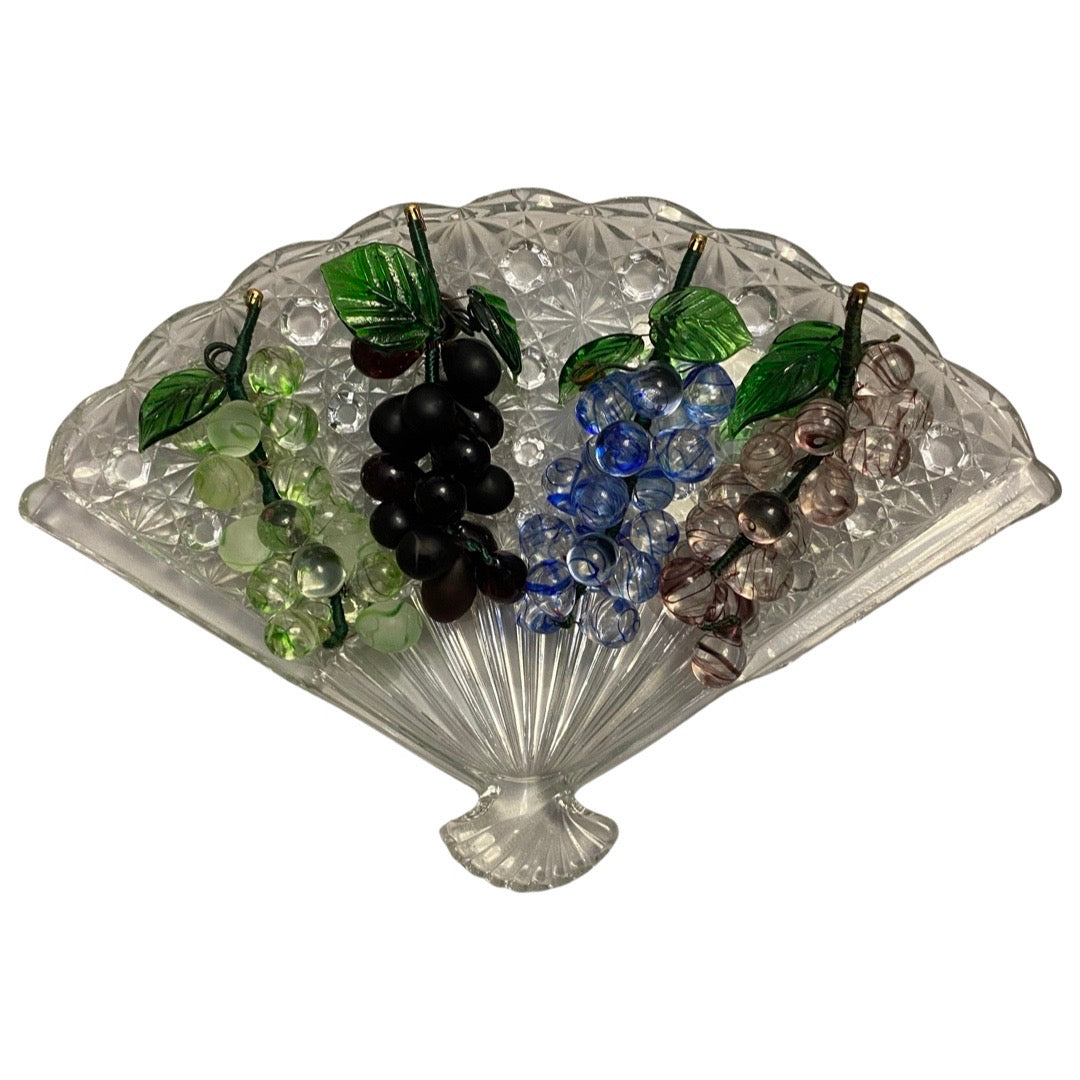 Assorted mini glass grapes in four colors. Each is in good condition as is sold separately. The fan dish is available in a separate listing.