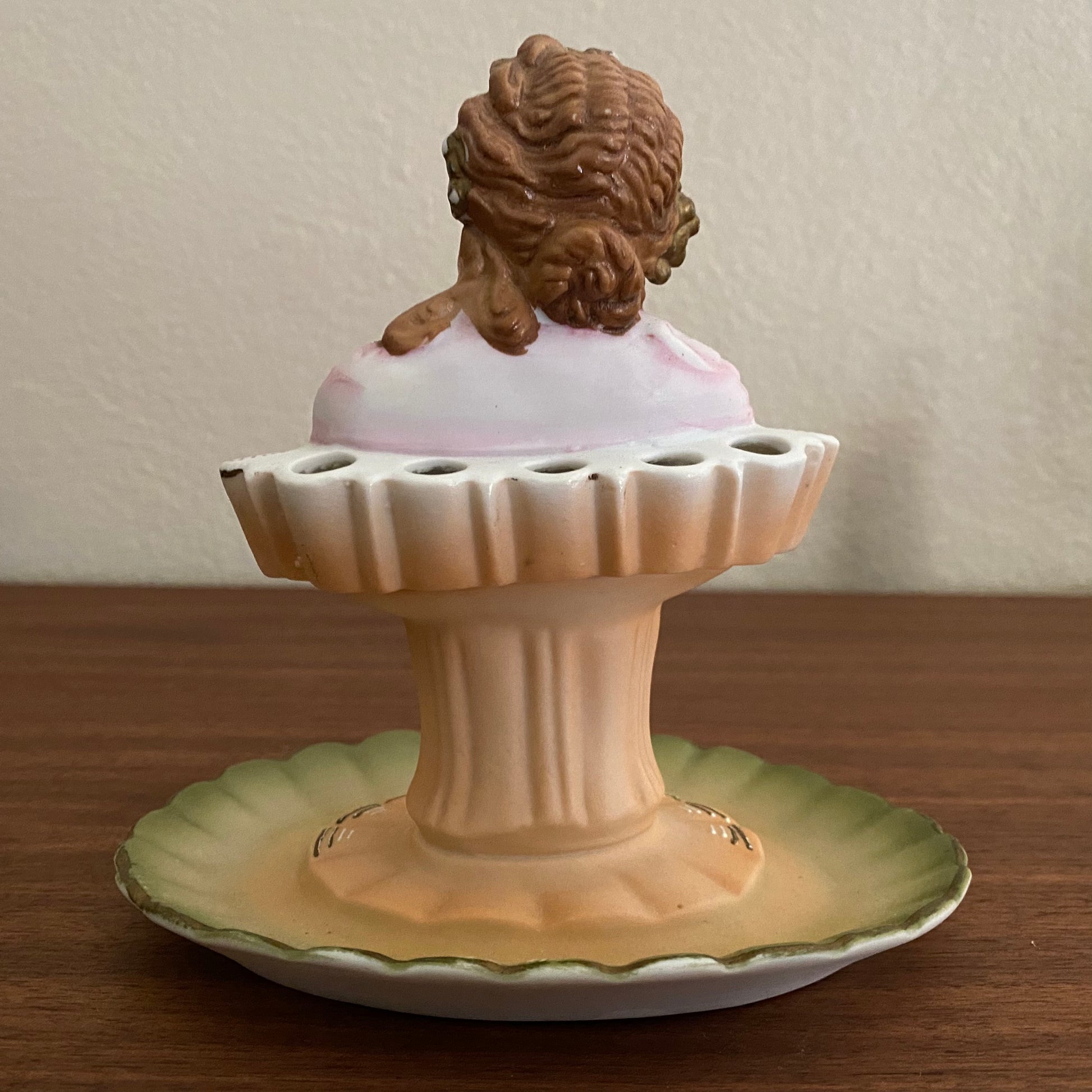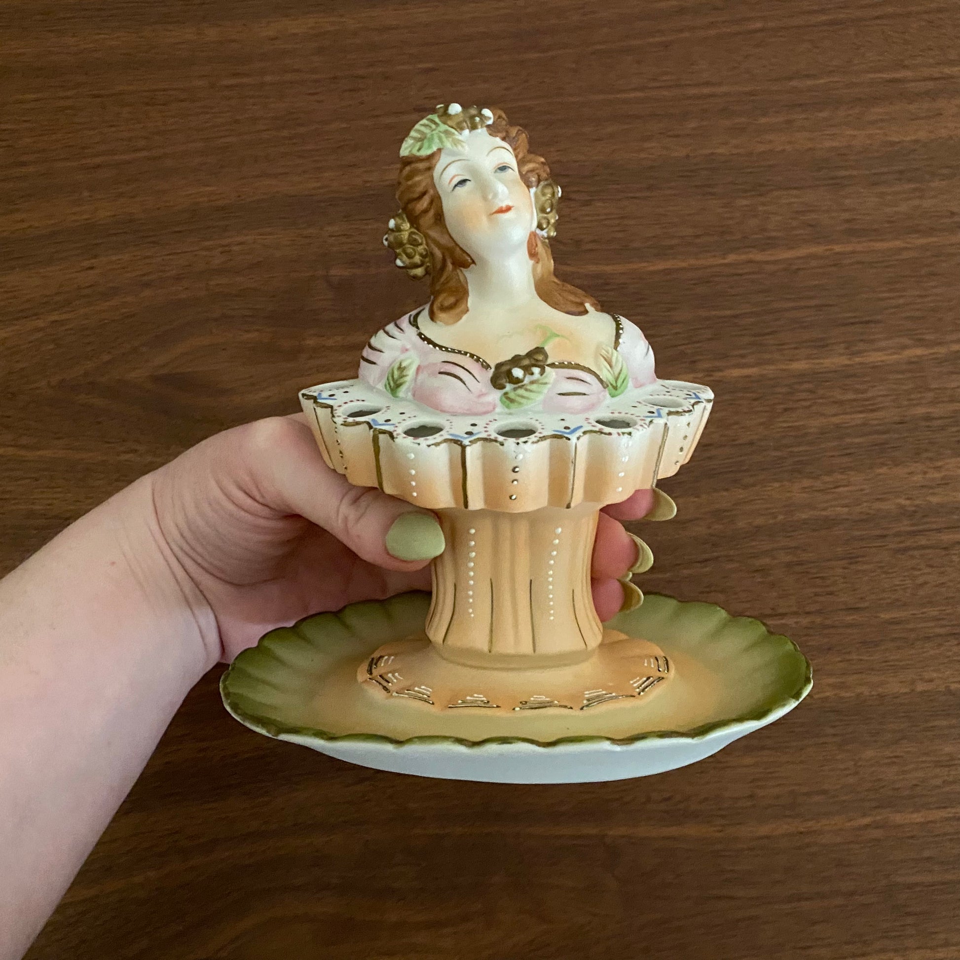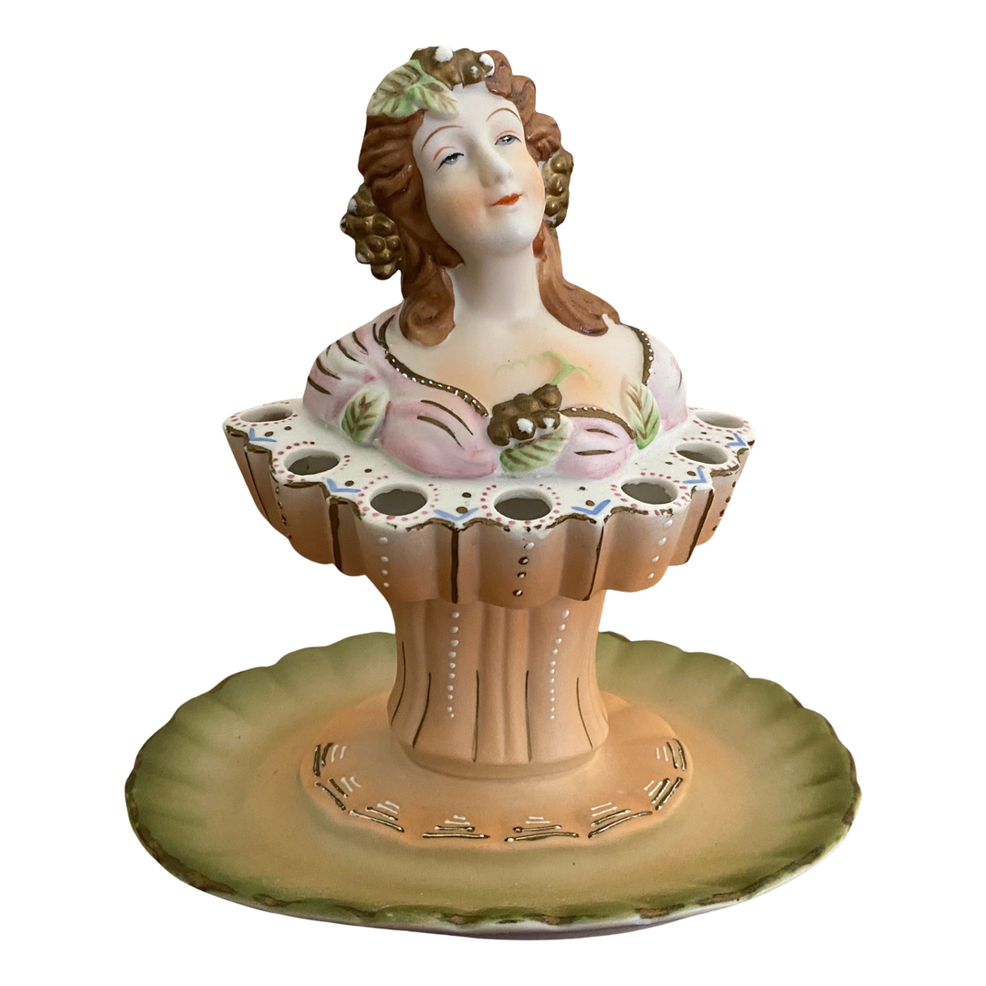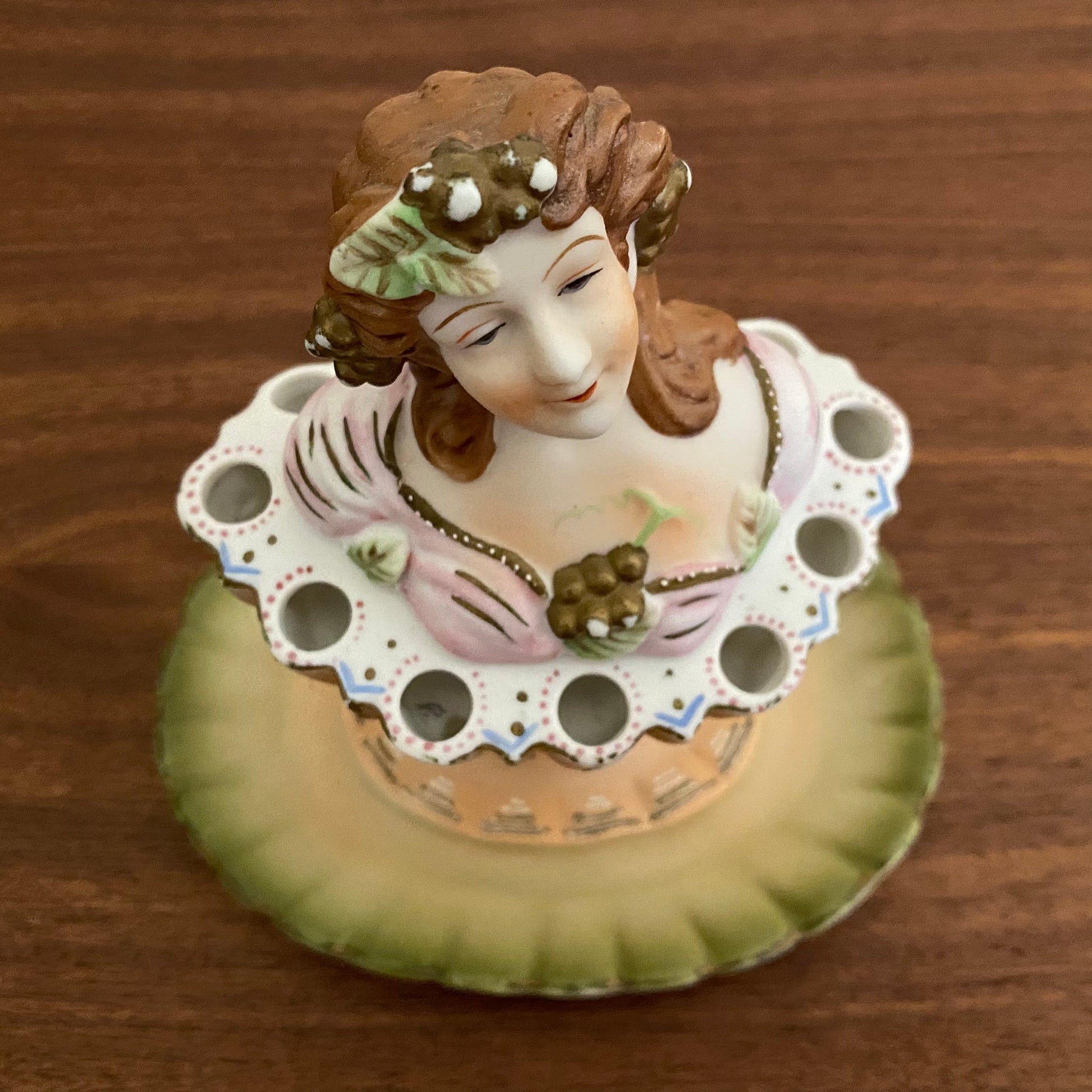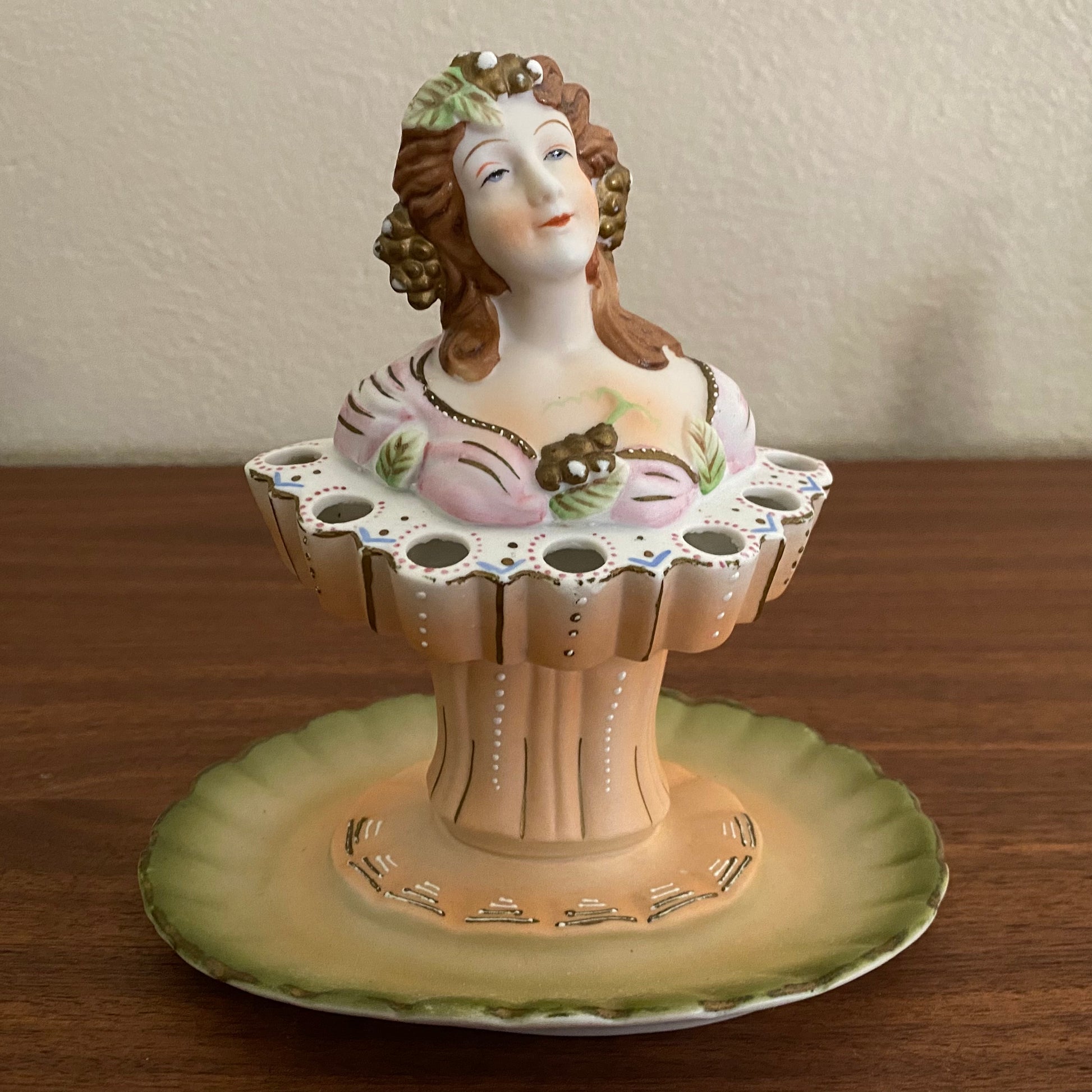 Beautiful woman cigarette holder with 12 slots for cigarettes in good vintage condition with some minor wear in hair.