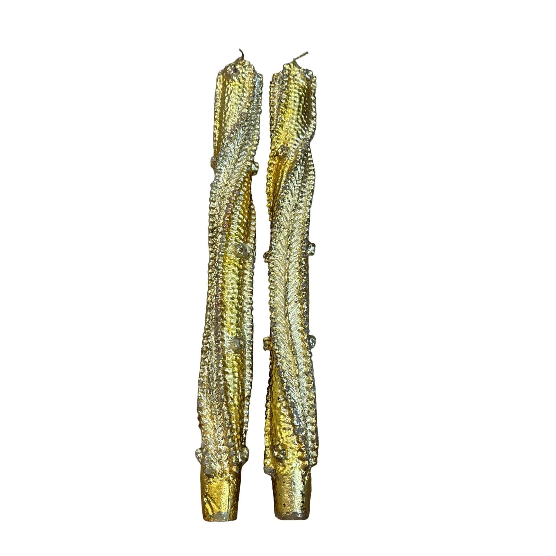 A stunning pair of shiny vintage taper candles in good vintage condition with some minor wear. Unburned. These will be sure to make a statement!