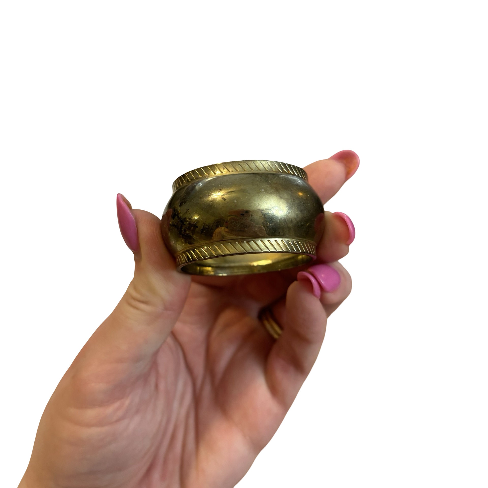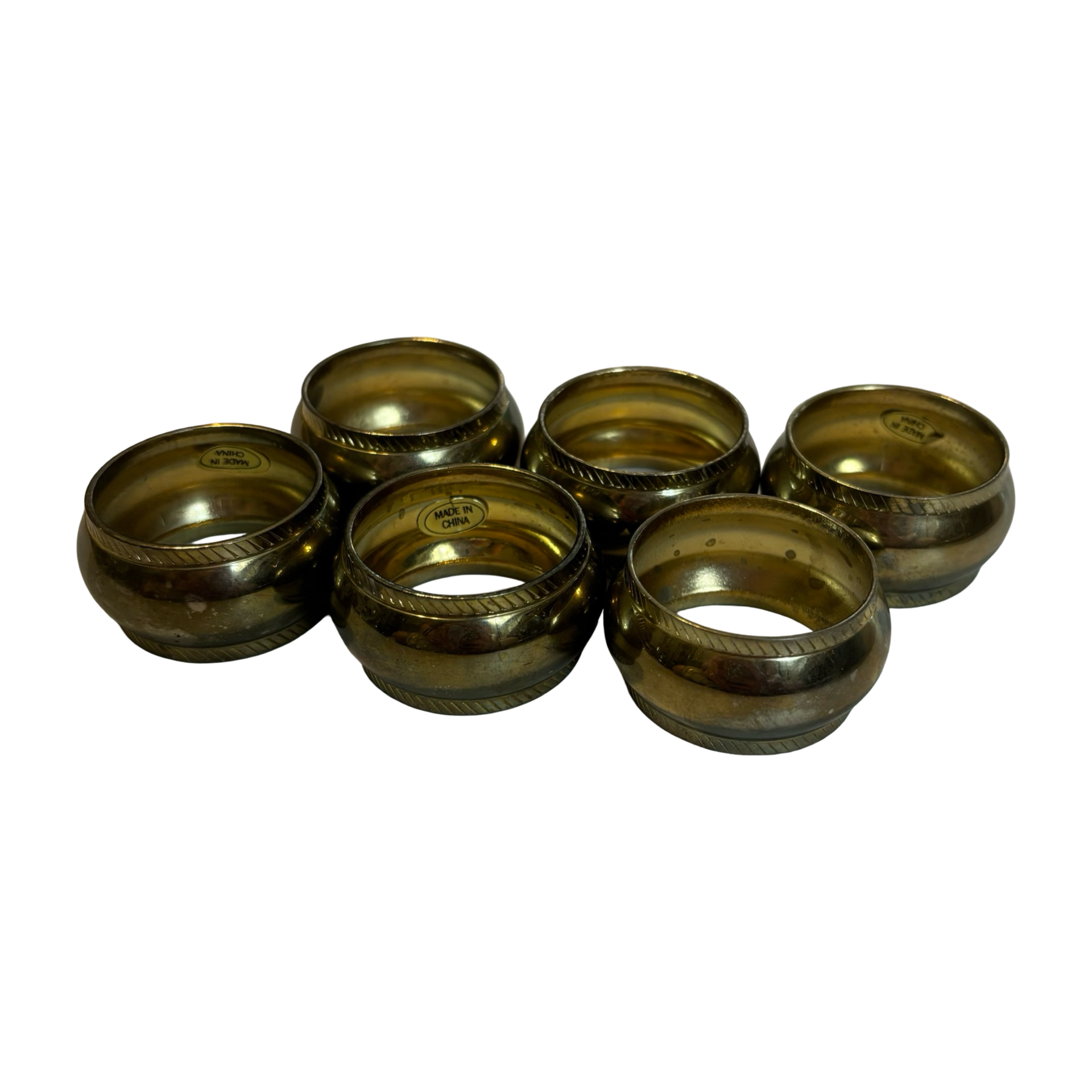 A set of six vintage brass plated napkin rings. Perfect for accessorizing your next tablescape!