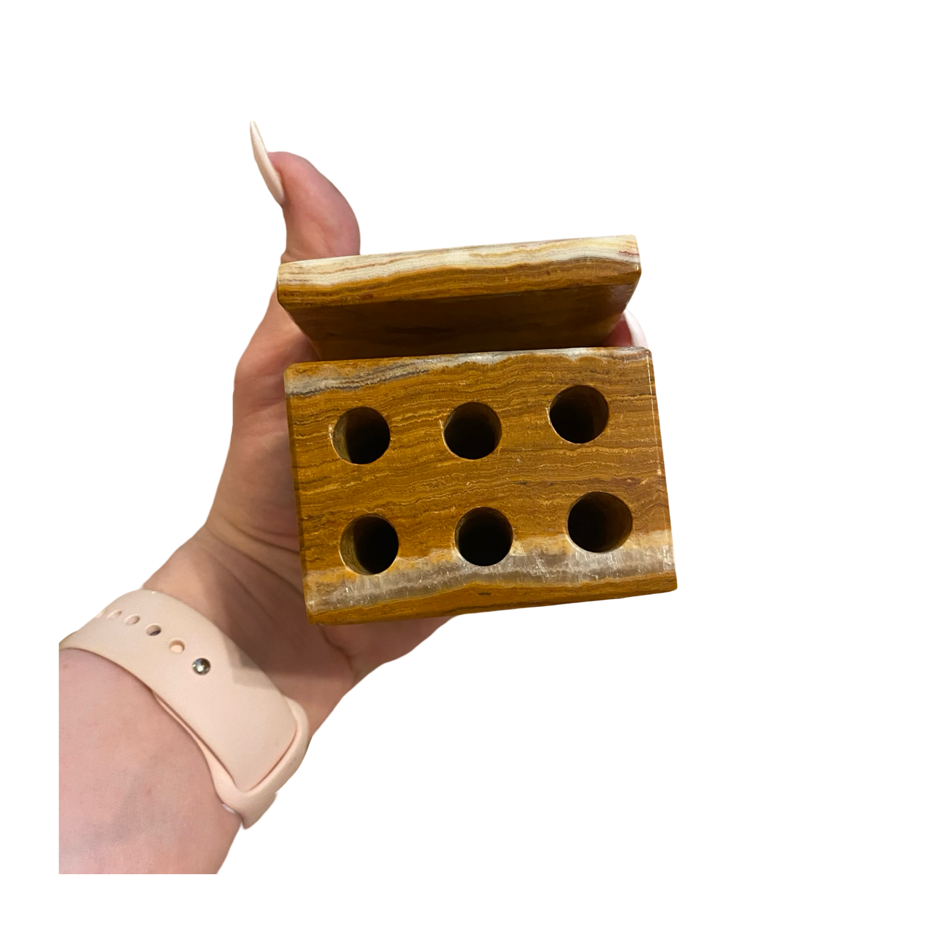A beautiful stone pen holder/desk organizer in good vintage condition.