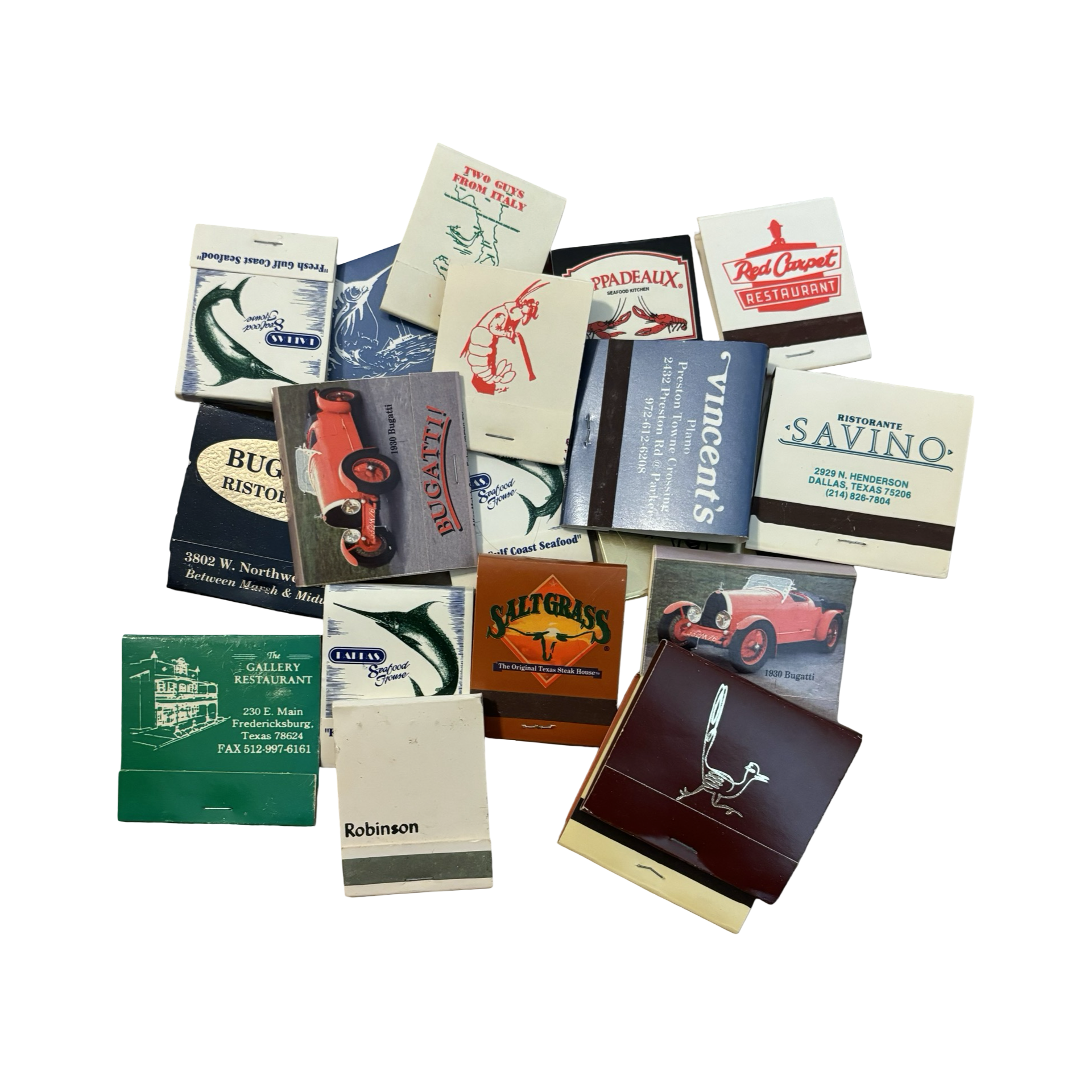 A fabulous set of 20 vintage matchbooks primarily from restaurants in Dallas,TX.