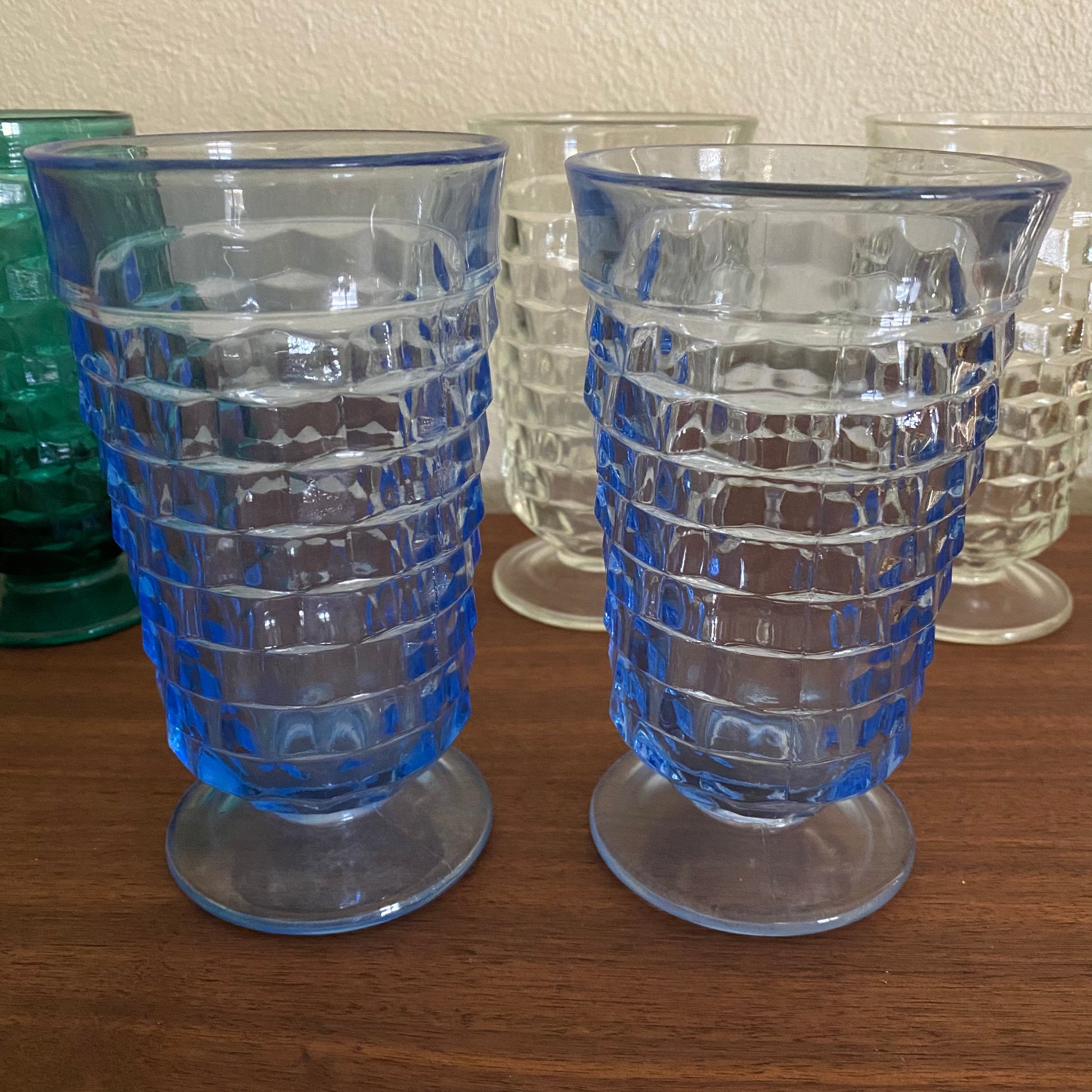 Beautiful vintage whitehall glasses in good vintage condition. Some minor wear to the avocado glasses.