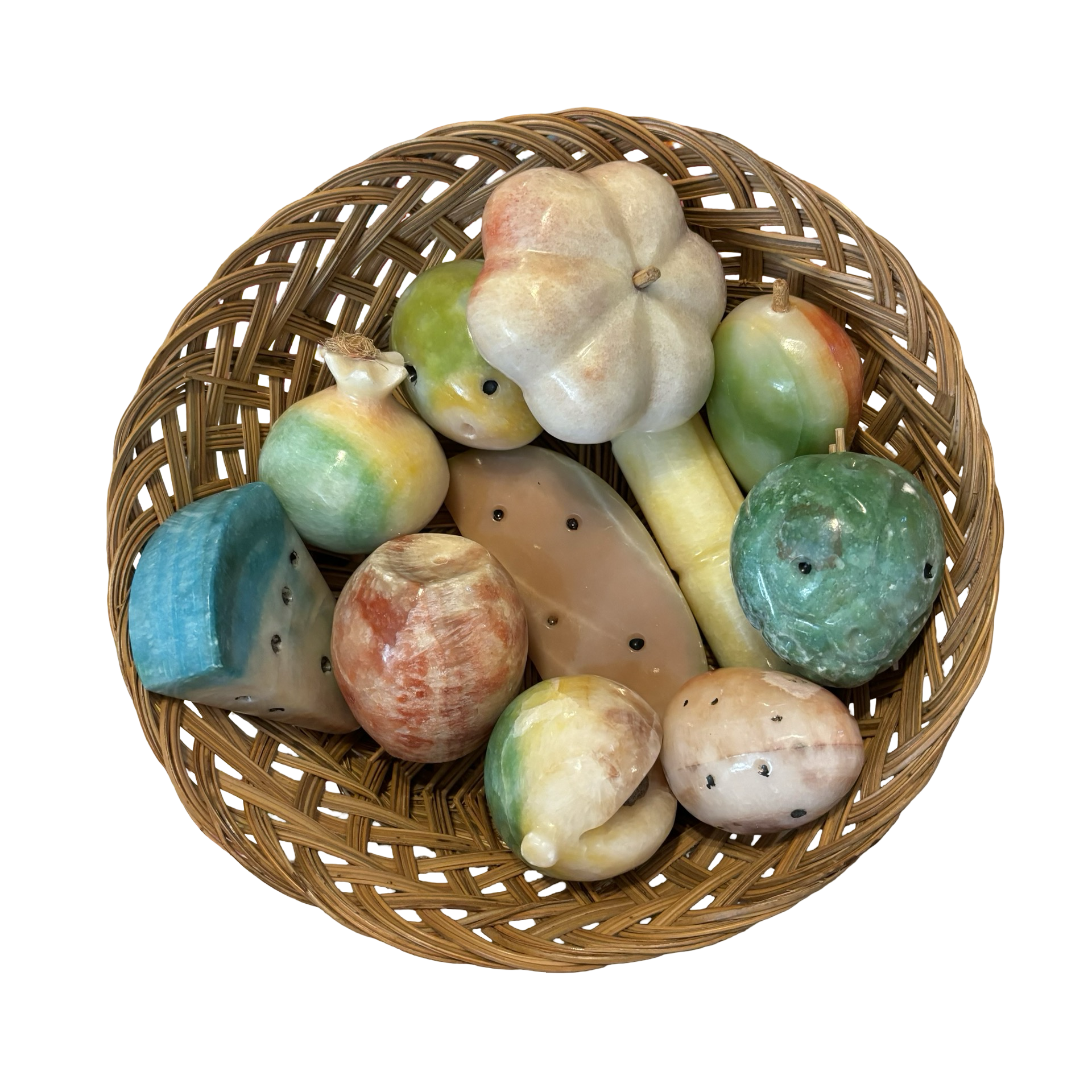 A stunning assortment of alabaster fruits. Ideal for display in a bowl! Comes complete with 11 fruits in overall good vintage condition with some wear.
