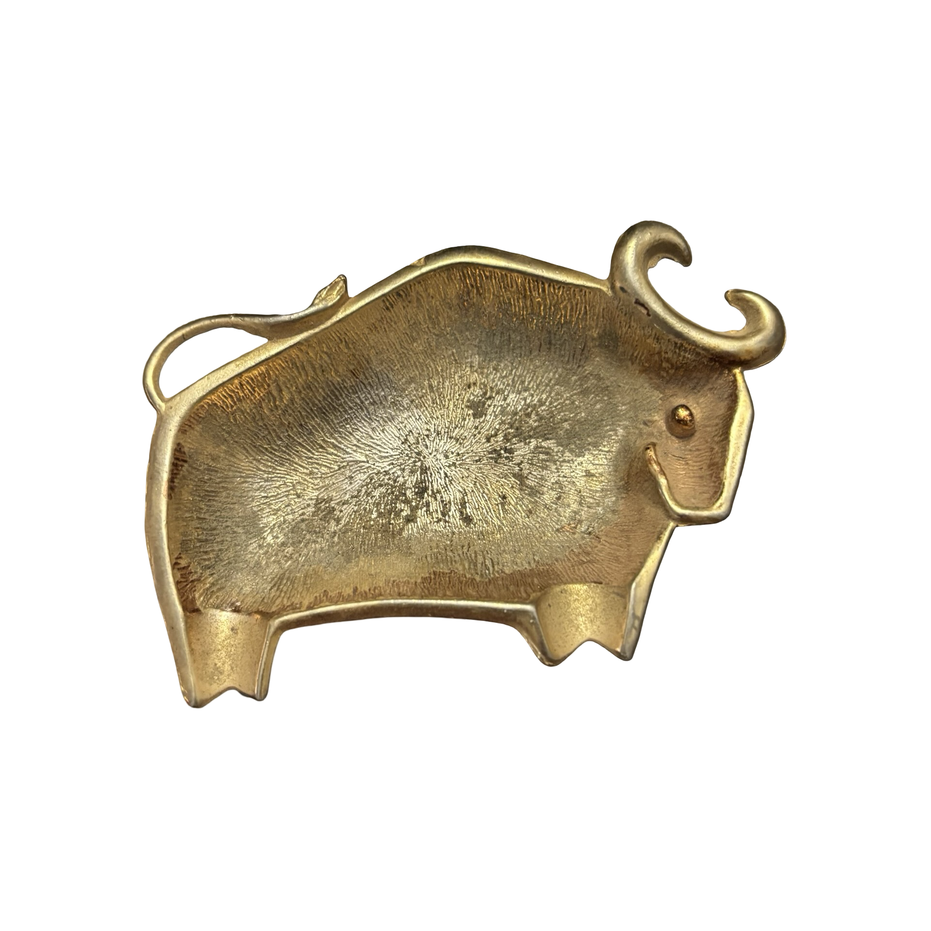 A beautiful plated brass ashtray in the shape of a bull with some wear to the plating! This would be a perfect gift for a Taurus!