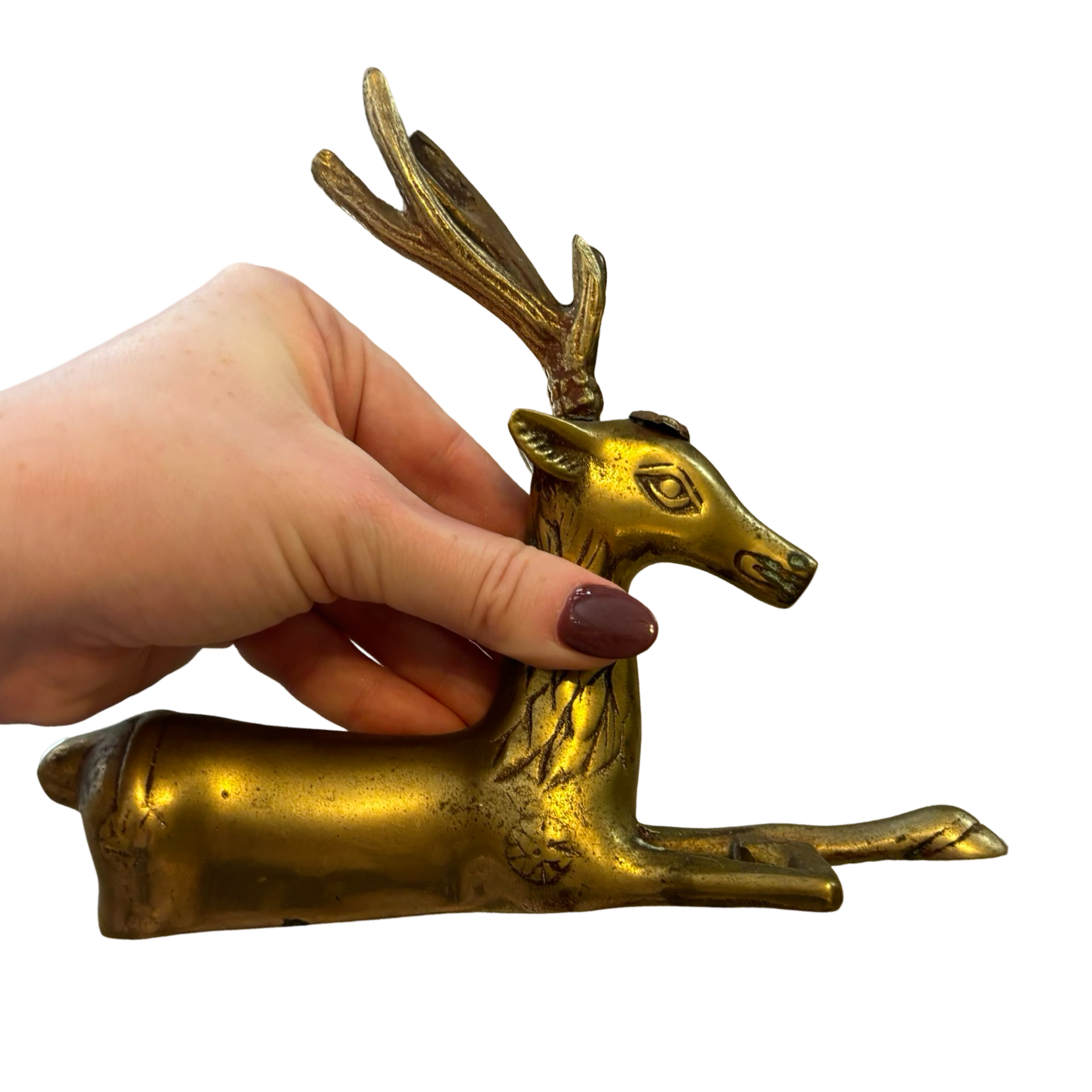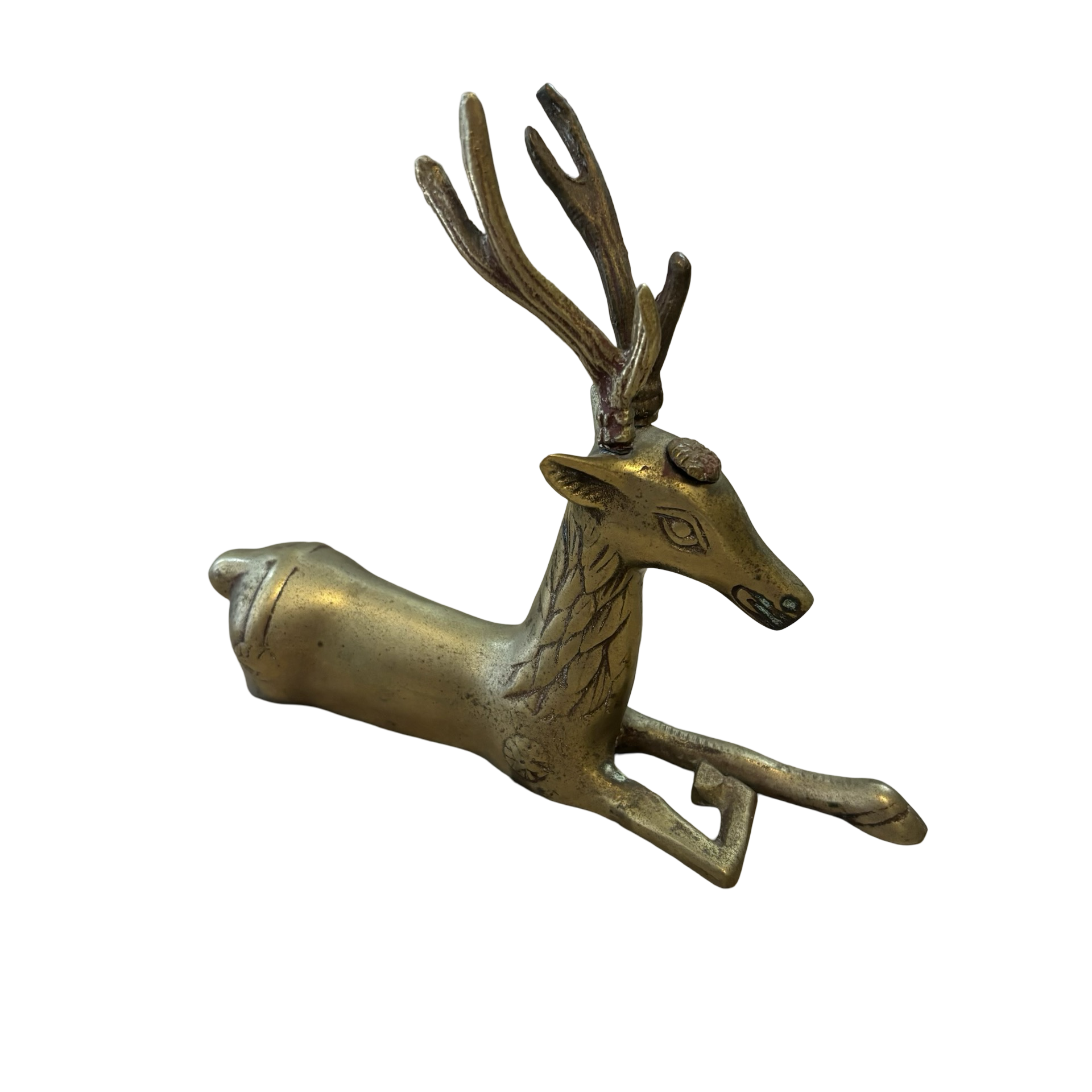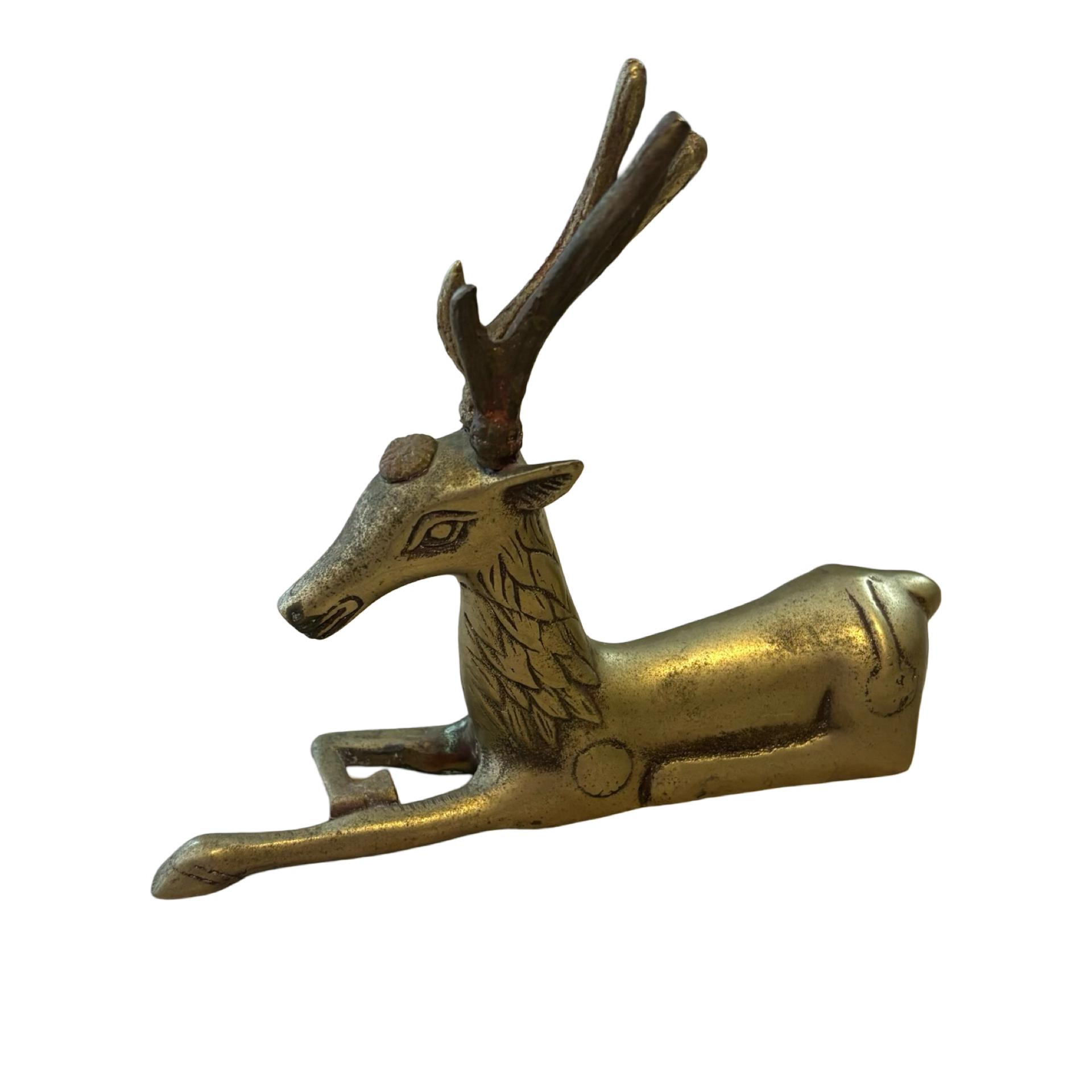 A gorgeous brass deer! One antler is very slightly wobbly.