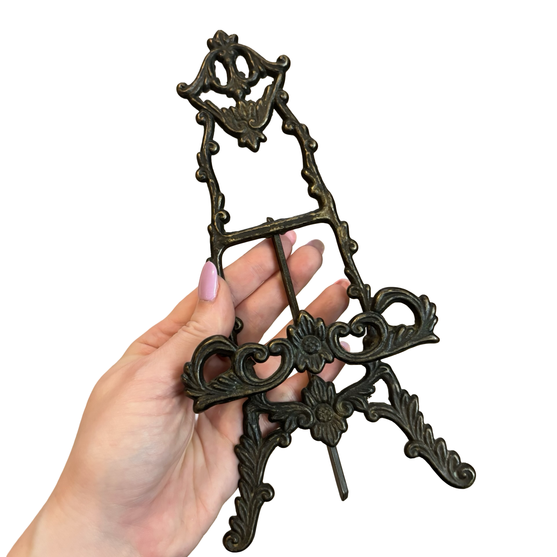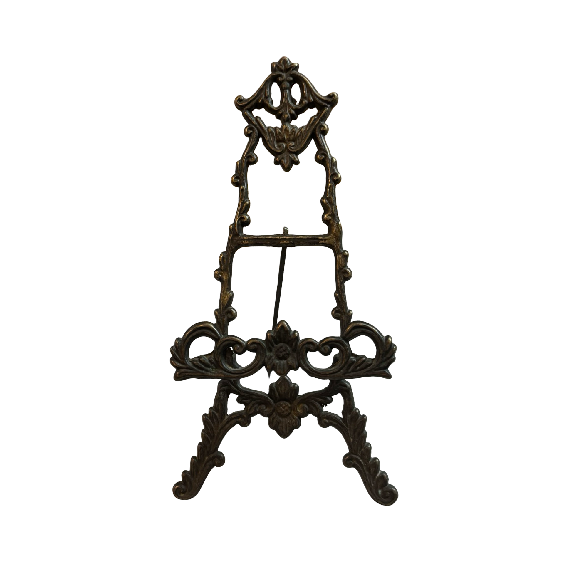 A vintage brass easel with a dark patina. Ideal for displaying art or a book!