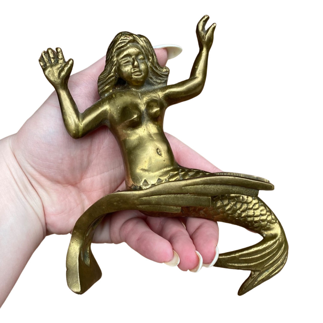 A beautiful brass mermaid nude art in good vintage condition with some hinging at the middle.