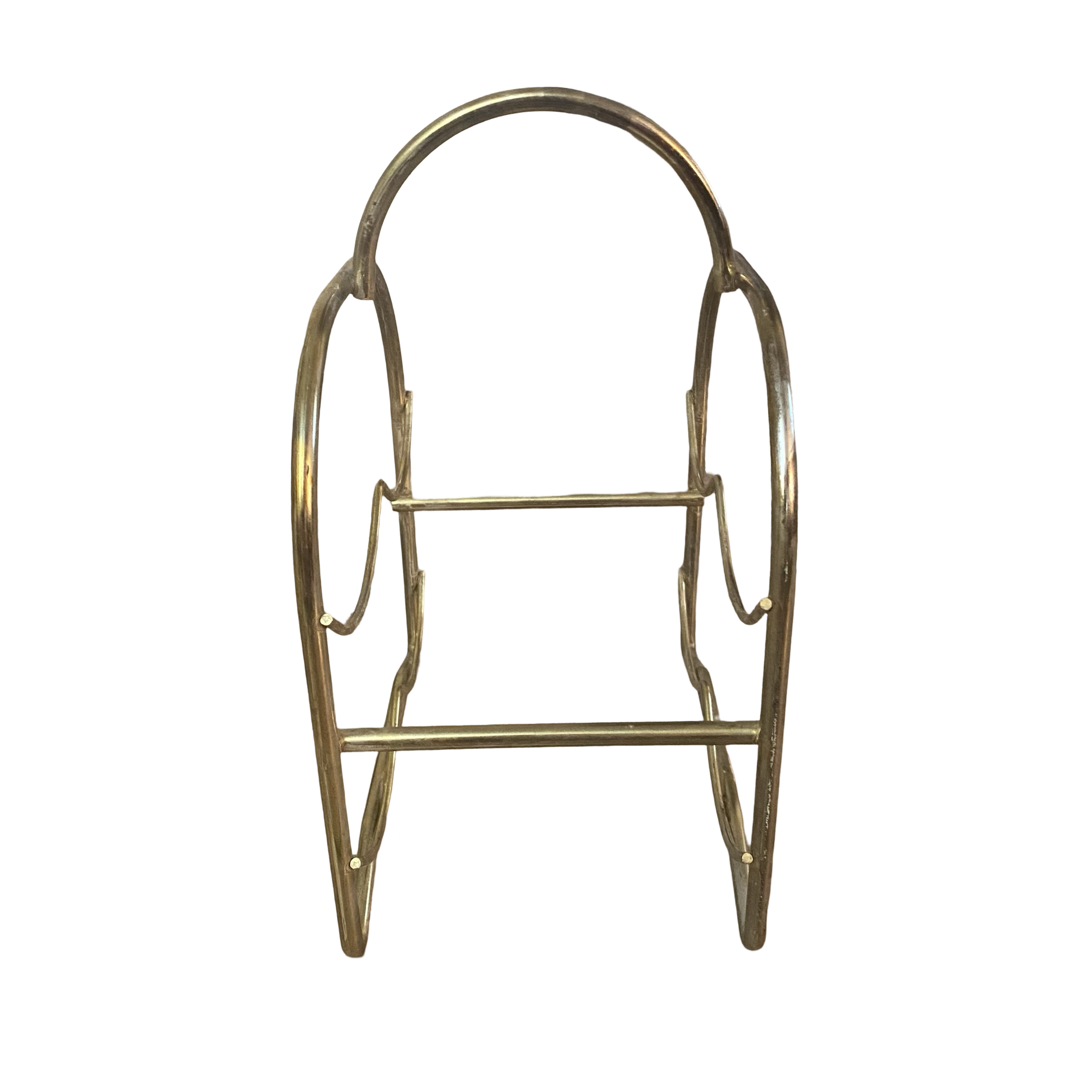 A vintage brass plated wine rack in good vintage condition with some plating wear.