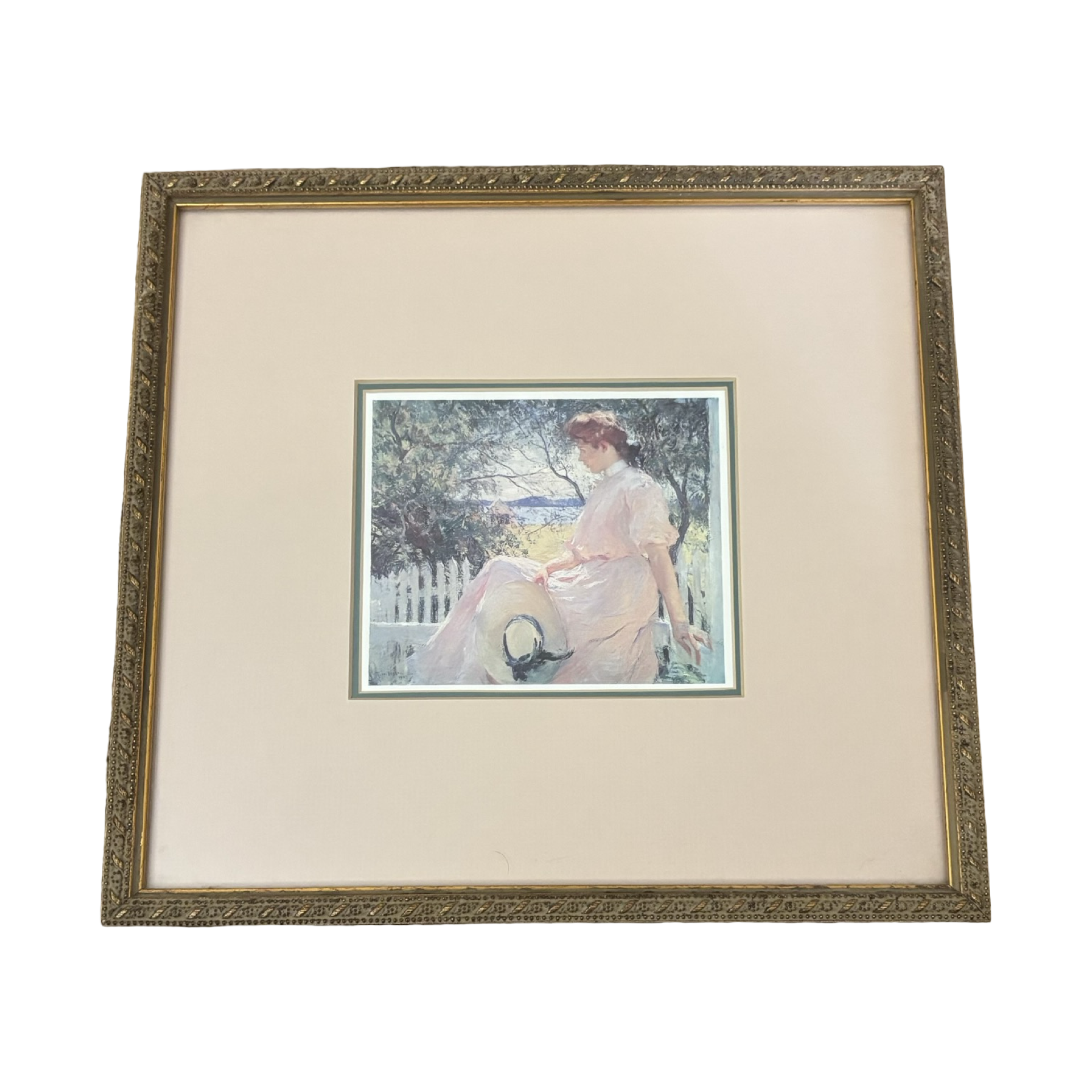 A vintage framed print of the painting "Eleanor" (1907) by American Impressionist artist Frank Weston Benson. Simply beautiful!
