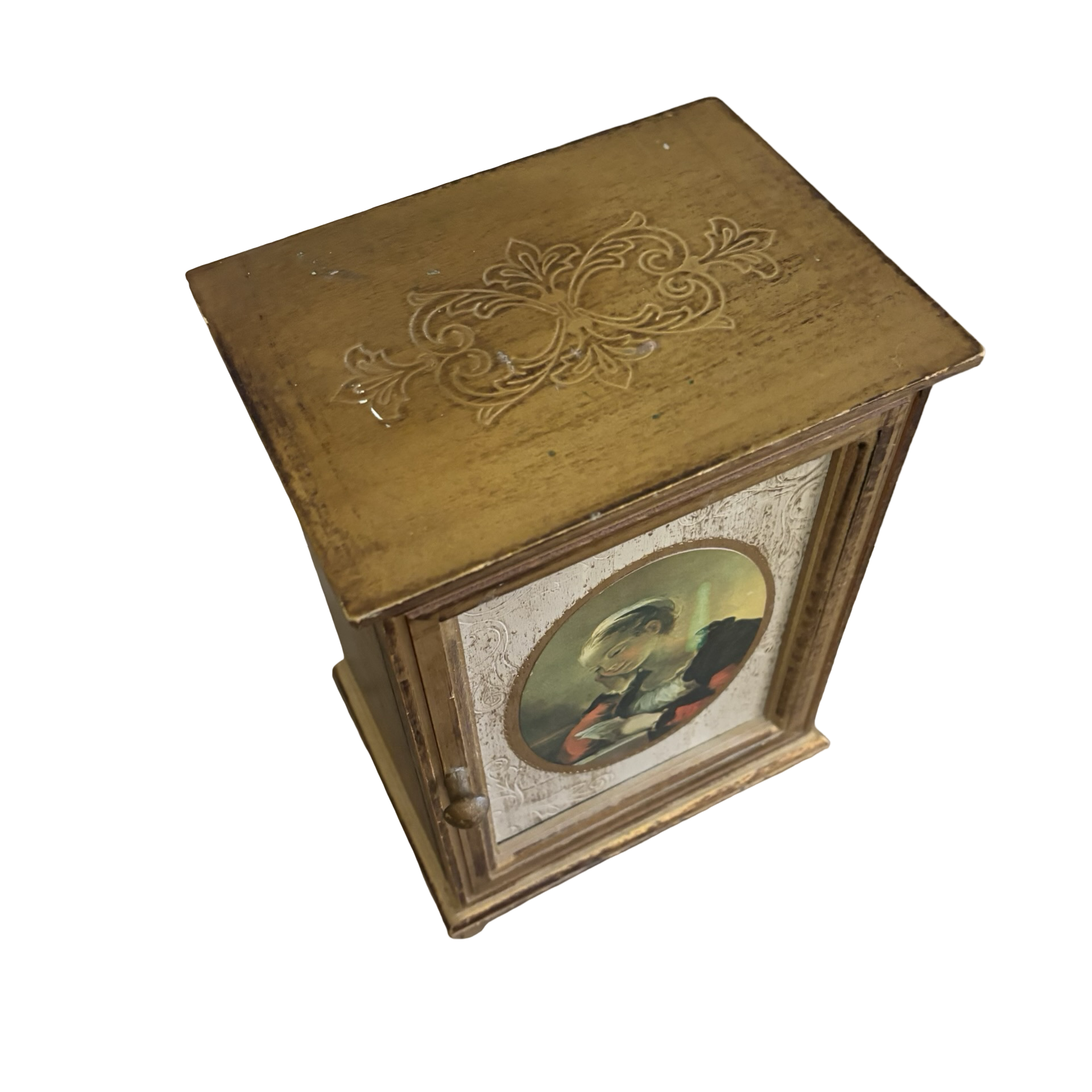 A beautiful three drawer jewelry box with a Florentine finish. Yellow velvet adorns each drawer. So special!