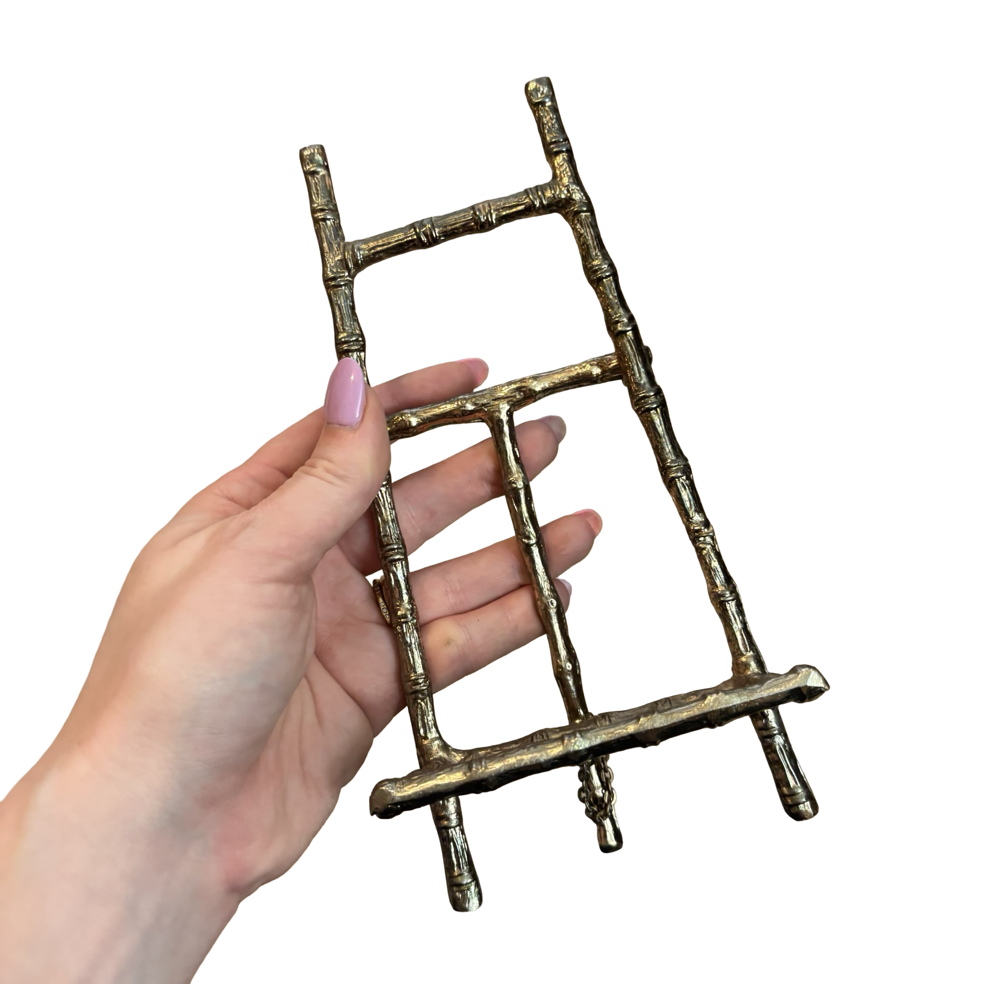 A beautiful vintage metal easel in silver. Love the bamboo look!