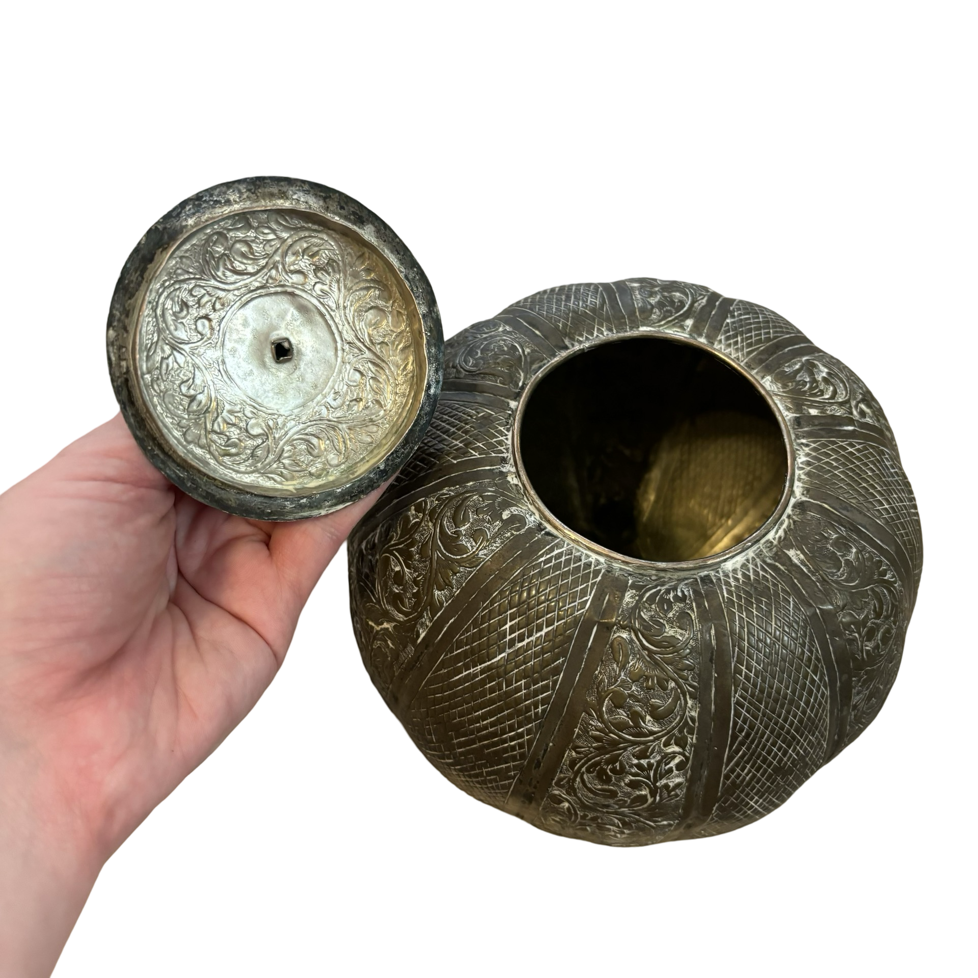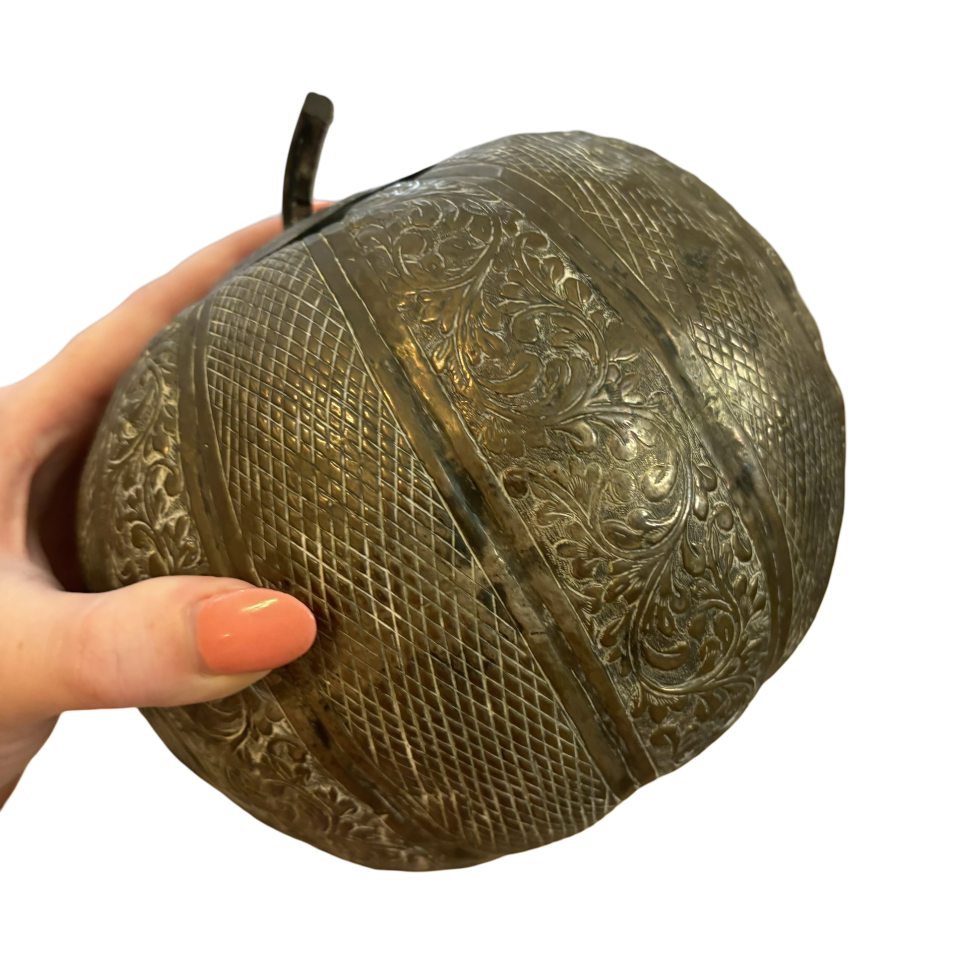 A fabulous metal pumpkin box! This beauty feels so old, it has wear throughout and I think it adds to the charm!